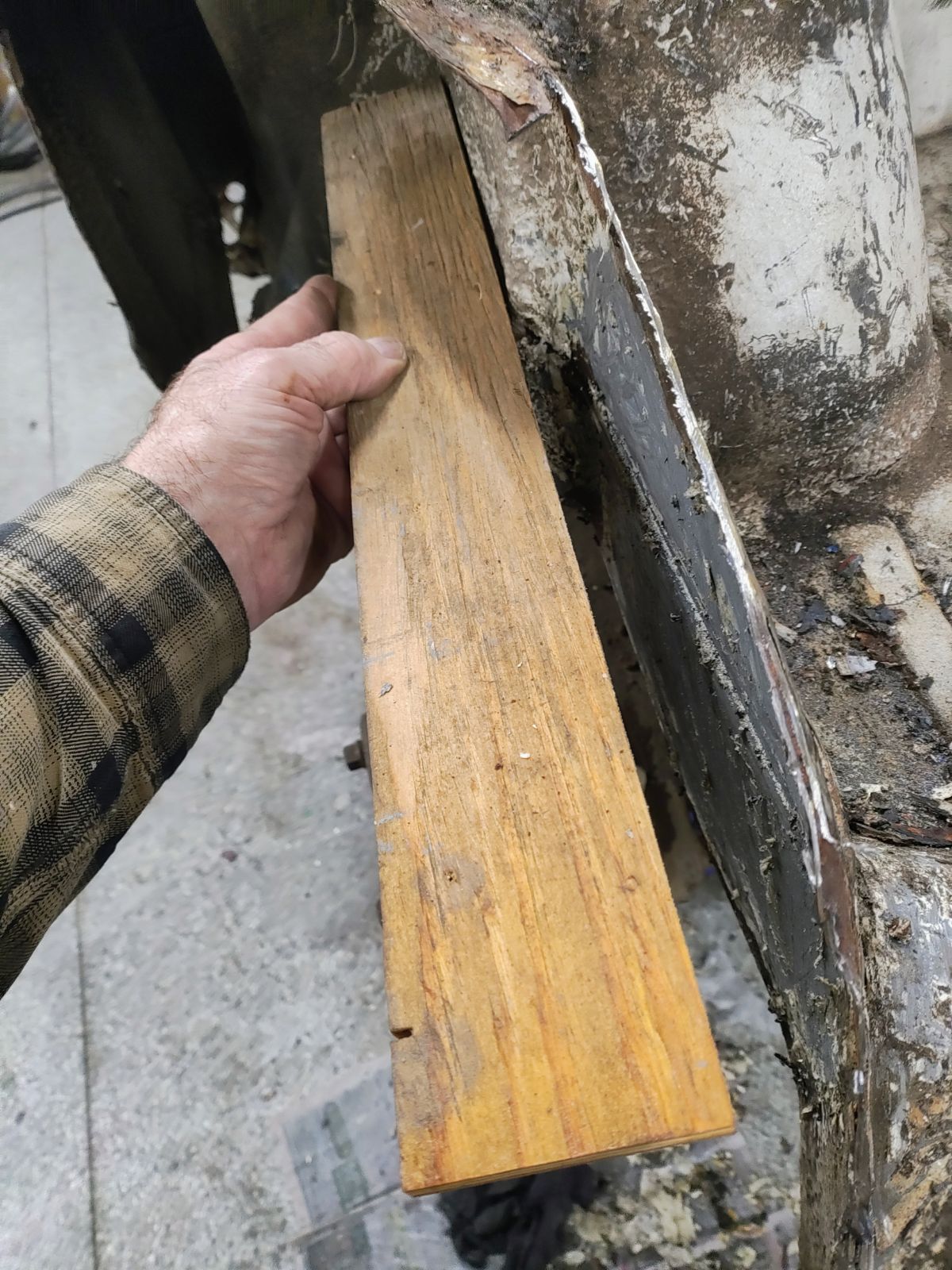 Starting to remove the kinked inner fenderwell