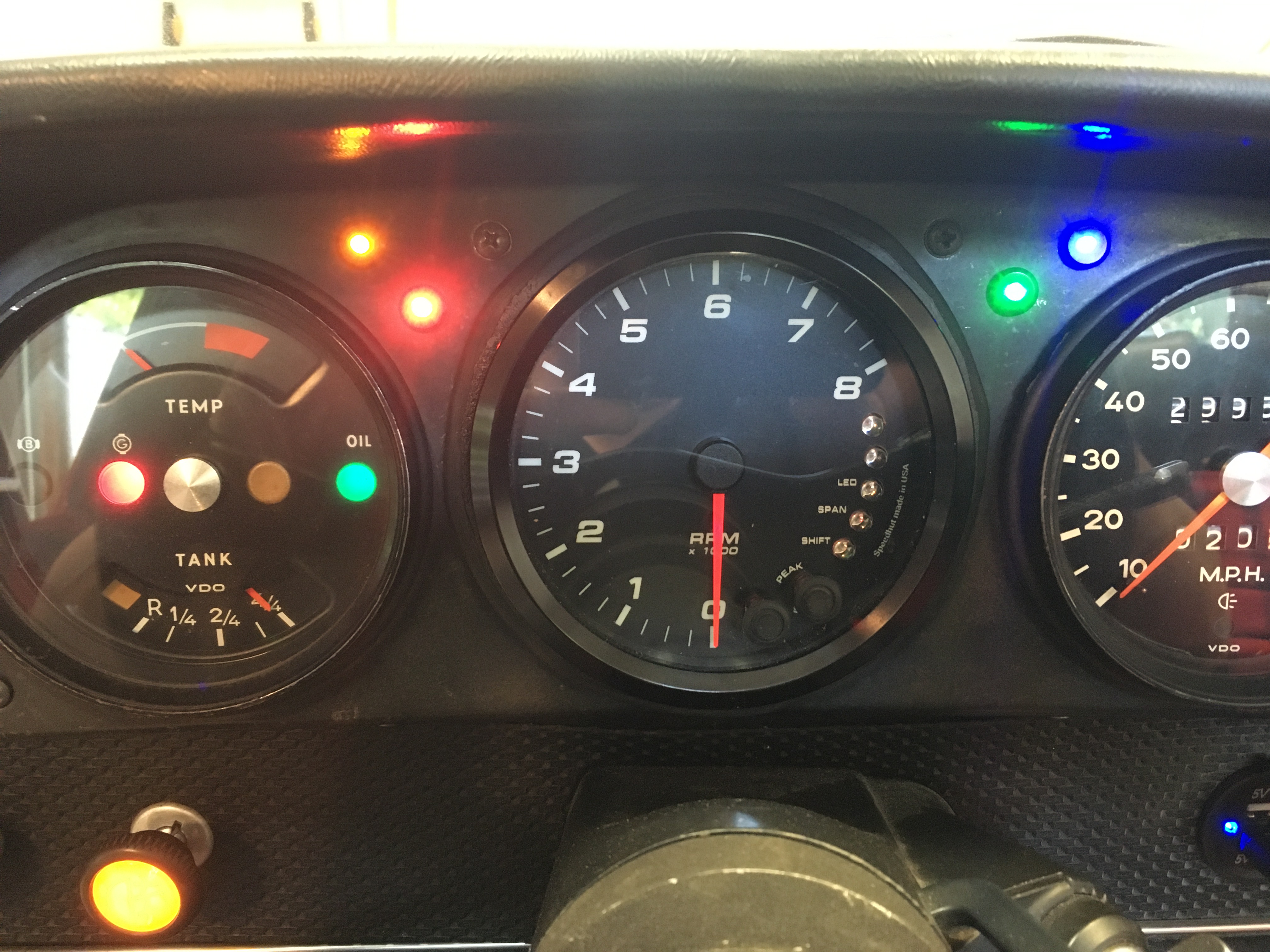 Red = oil pressure because red should be for oil pressure Orange = GEN light Blue = high beams on Green = turn signals flashing Attached thumbnail(s) |