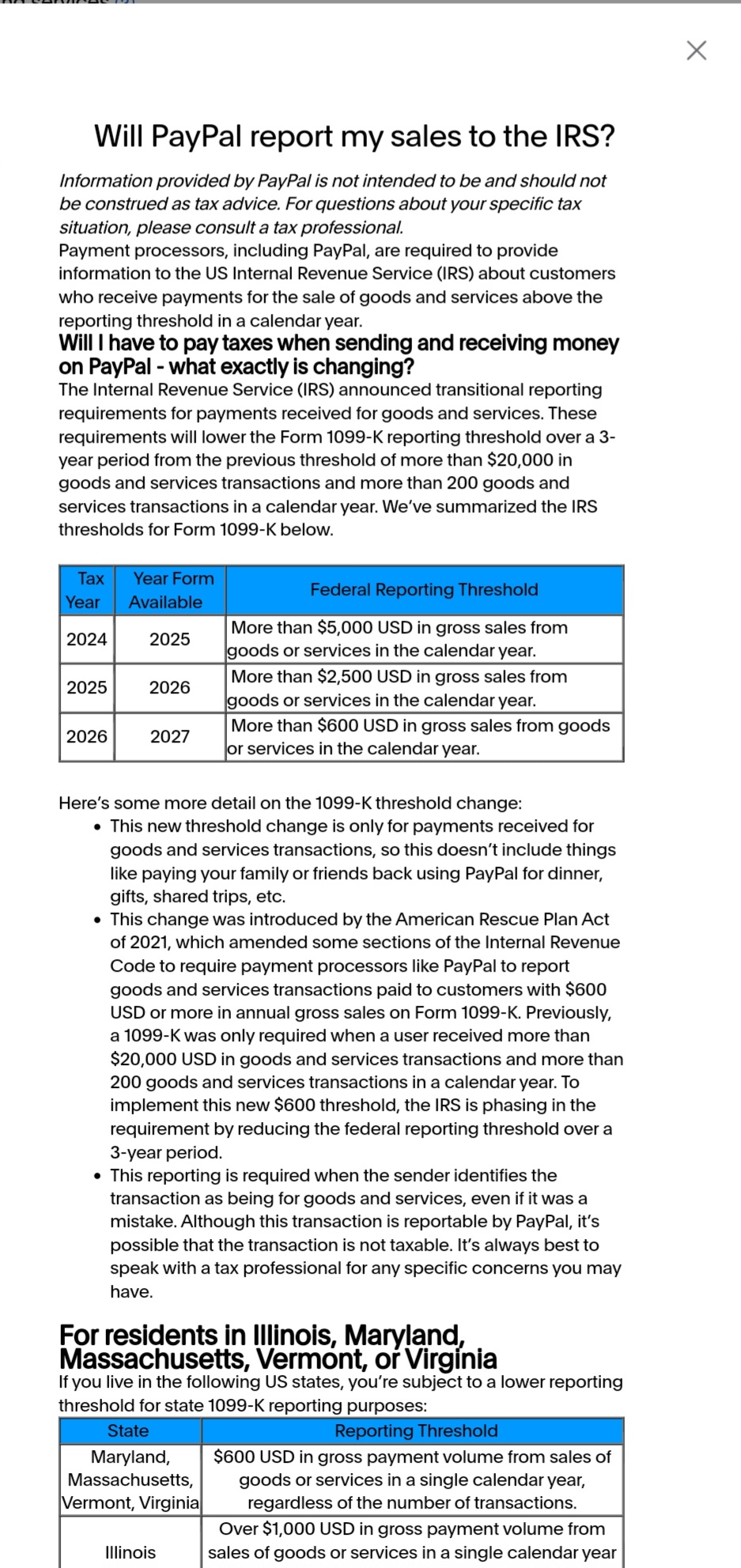 sixaddict Tax consequences of paypal Jan 26 2025, 05:12 PM