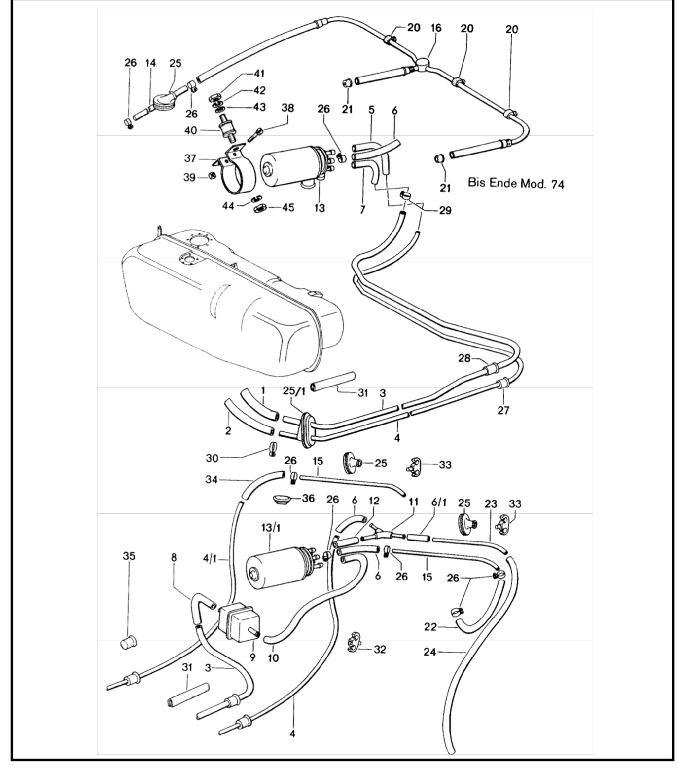 Its the same grommet used for the plastic brake pipes VW# 111 957 861 I don't believe it changed to the large single grommet until late 74 possibly 75 when the pump got moved up front. This is on an early 914-6 for reference 1970 914 6 2567 Unmolested 914 6 two grommets I can't imagine there would be a difference between 4 and 6 cyl. in this area. I've seen something in two original 6 cars that would be unthinkable today. NO hose clamps As seen in this photo and observed in 914 6 # 1467 I owned both cars and was the first to remove the gas tank in both cars. Also, amazingly no hose clamps at the fuel pump connections either. Attached thumbnail(s) |