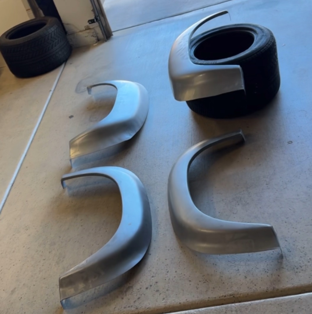 I decided to bite the bullet on flares and ordered from PMB. Knowing that metal prices seemed to be going up, now seemed like the best time to and PMB had the best price. While PMB is fairly close to me here in Southern Nevada, I was surprised to see that the flares were originating out of Murietta, GA. I thought to myself "I bet they drop ship them from Auto Atlanta" Definitely the case and makes no difference to me where they came from but I found that interesting. Autoatlanta also charges something like $200 more for the flares. I think they all get made in Canada by Restoration Design. I put my 345/35 tire under it just for giggles. I'll be using the 15X8s from the previous post with these. |