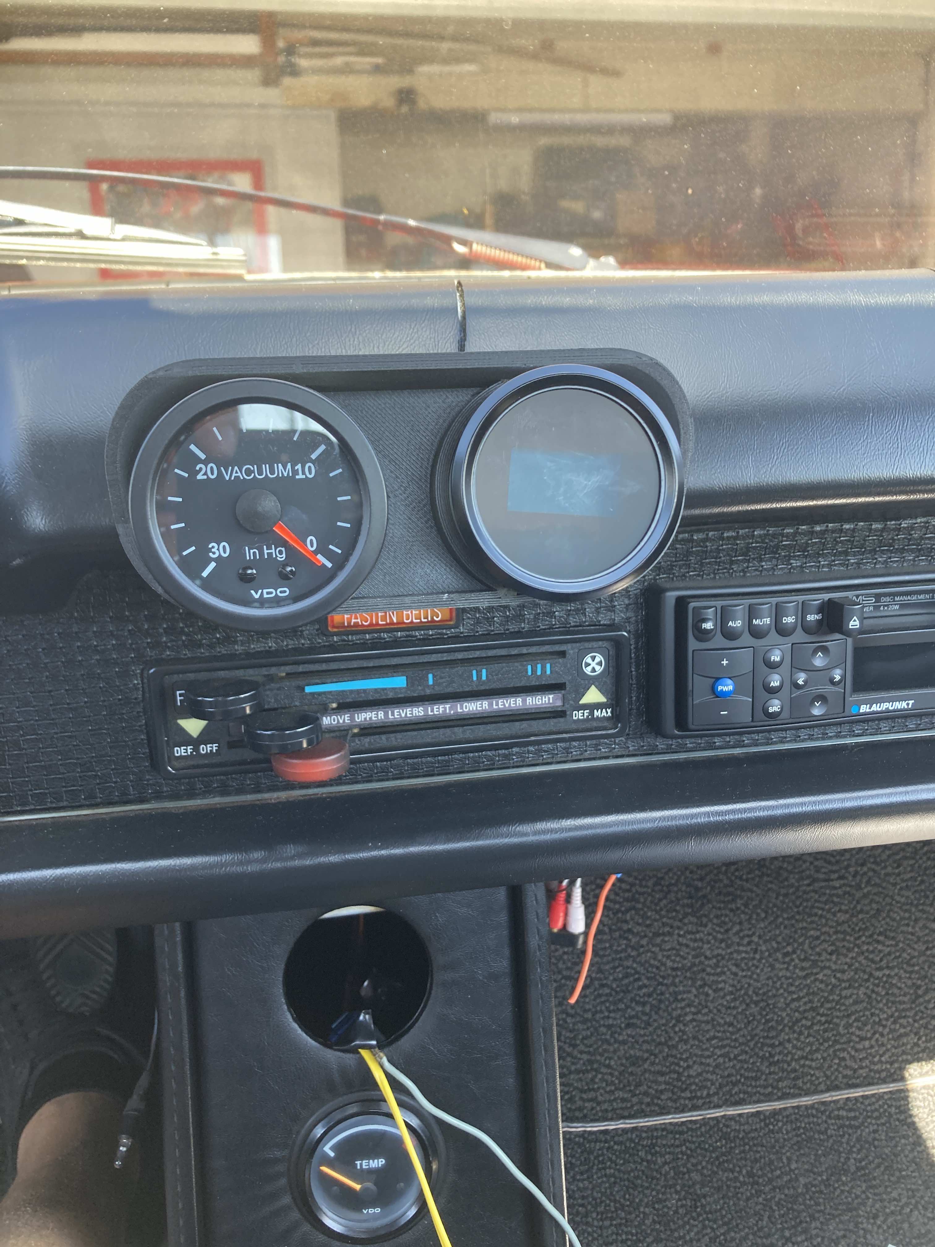Very good idea. You have the chart for that temp gauge? I think people post it weekly. I would verify the sender matches your gauge as well if you haven't. That vacuum looks right with retard running. Did it drop your idle down? I don't have the chart but I can search for it. Yes, I had to increase my idle because it did drop . I am working on installing my gauges and wiring now .Here's a picture of the gauge pod that replaces my ashtray made by RTz and sold in the classifieds .I noticed the AFR gauge does not come with a wiring diagram and will have some questions about the extra wiring leads on the power plug later (still need to get the bung installed and decide which muffler to install it in as I forgot to purchase an additional bung) .Hers a photo of the ashtray gauge pod ,I really did not want to cut up my centrer console to install gauges ,by removing my clock which doesn't work I have just enough holes . I noticed some toggle switches on your center dash . Are those for powering the gauges ? |
