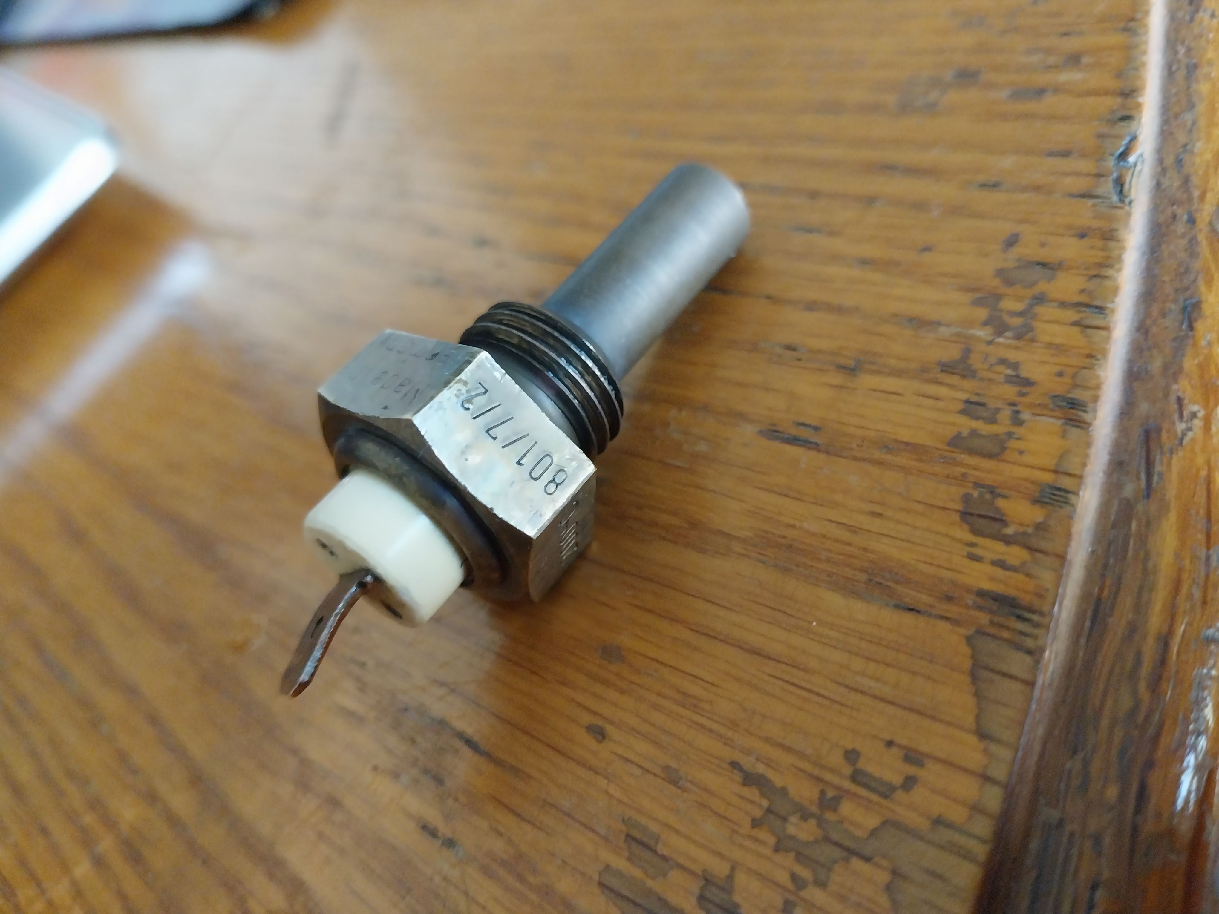 A while back, I asked about how hot a 914 should run on a VDO gage with no numbers. Responses said, I need to look at the sender to see if it matches the gage. I had a chance to get the sender out so here it is.