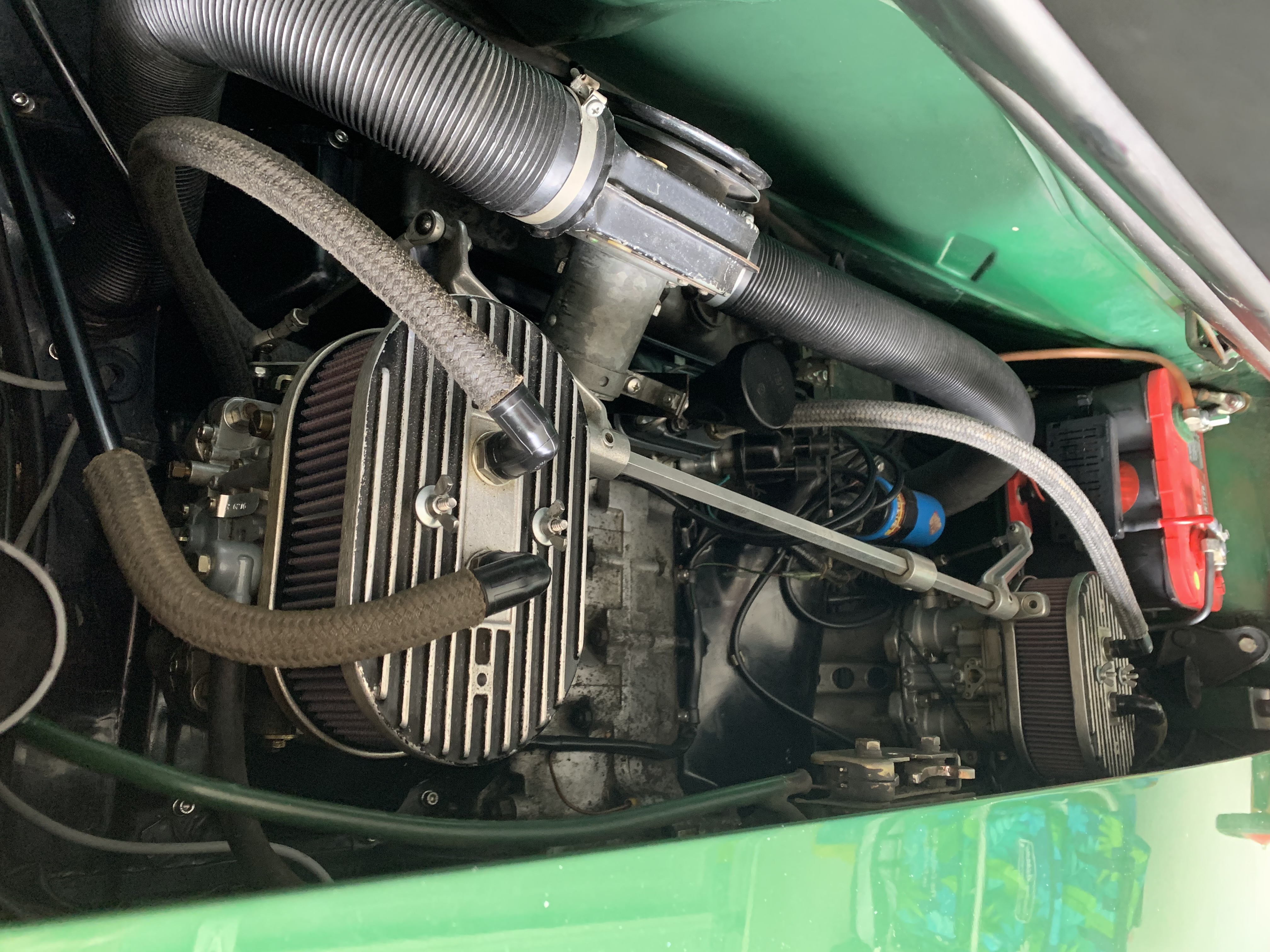 For several years after After I but it all back together the car's been running fine, had to clean one carb once and that worked fine. Now it's getting worse won't idle, it just dies after I let off the throttle. Runs strong at higher loads but very poor at idle & low load. I've cleaned the carbs enough that think I could do it blindfolded. I know the points dwell is OK and I haven't touched the advance. Using a heat gun i can measure header pipe temps just before muffler and one cylinder on each bank is way lower temperature than it's neighbor after holding the rpm's just above idle speed.