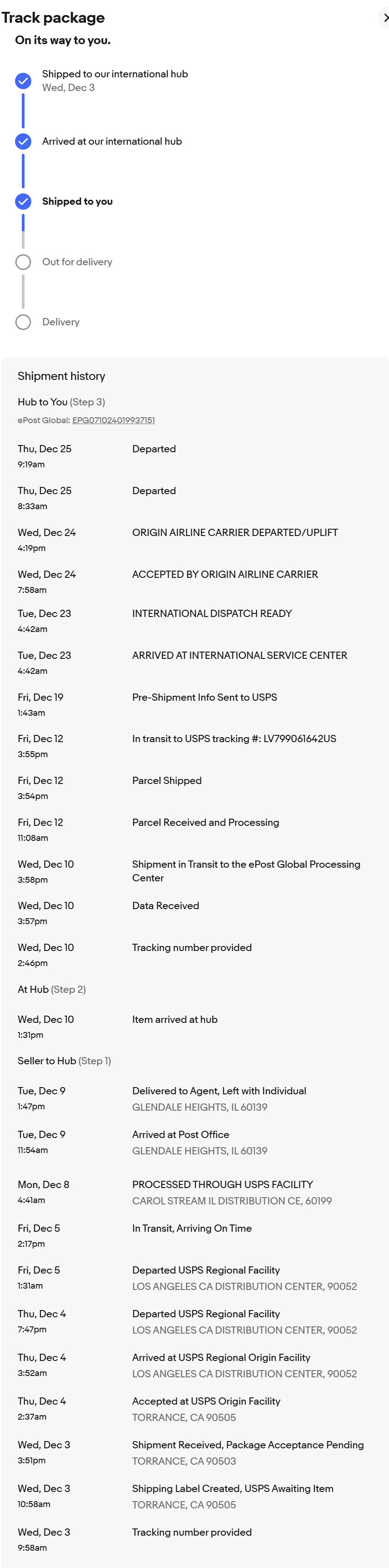 bdstone914 My son sent a package from California to the Midwe... Dec 25 2025, 09:49 AM