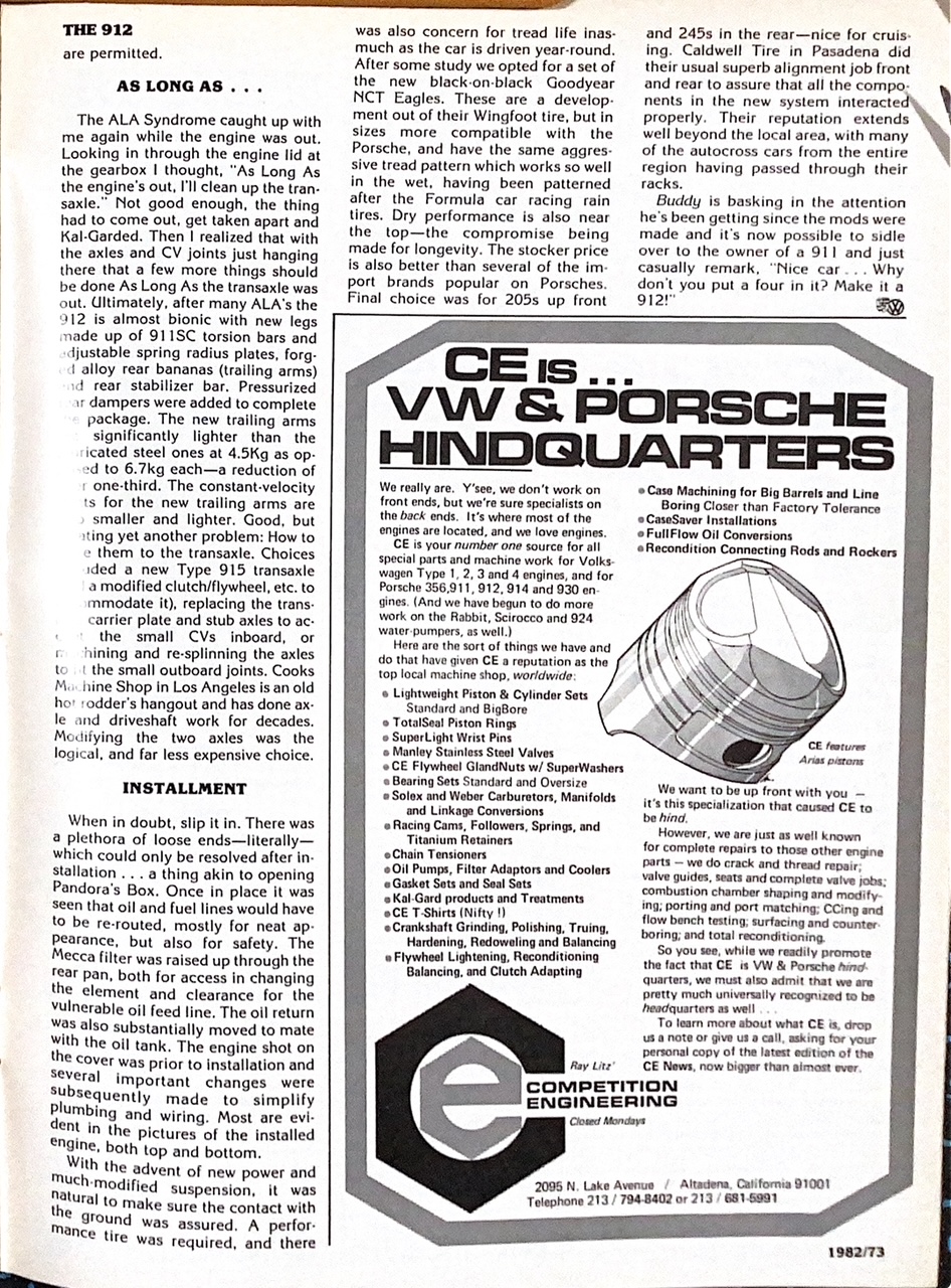 Long shot, but I’m looking for late 1990s to early 2000s print magazines that featured Type 4 2.5L high performance engine builds and/or parts catalogs of the same vintage that offered complete engine build kits of that displacement that featured welded cranks, cast iron heads, and JE pistons.