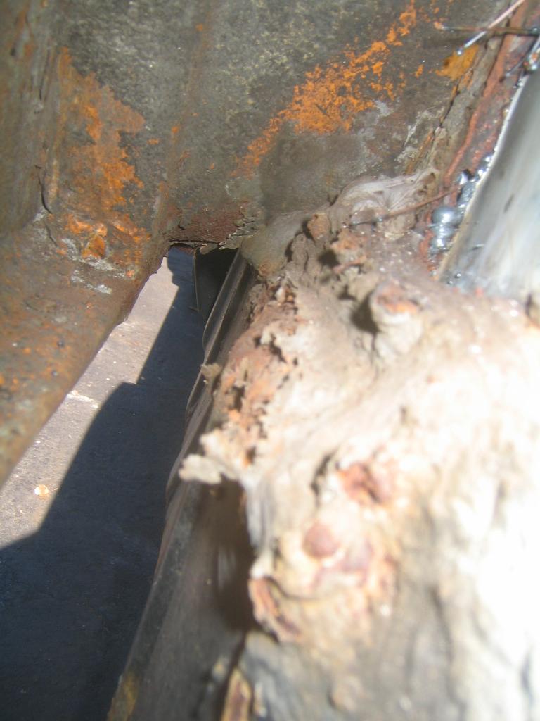 ok and last, an important question, i took a peek behind the rear quarter paned on the driver side and saw this...not pretty, im not sure how bad it is though, i didnt see any holes. how should i repair it, do i have to cut apart my fender??