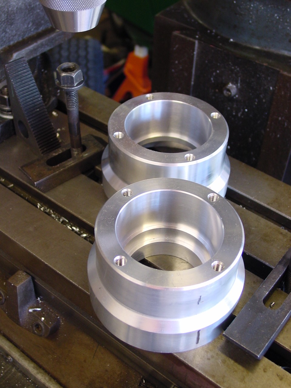 Ben, I started thinking in steel, went to aluminum, then back to steel. I got cught up with the aluminum version mainly due to the weight advantage, ease of machining, and went forward with less than adequate data. I bought all the proper aluminum materials. I even machined up the bearing carriers. In parallel, I was persuing data on aluminum welded (suspension) structural requirements, only to find in the end that it would require extraneous post weld treating (read $$$). Even with that, there would remain some degree of doubt without a proper testing regime (fatigue life, sudden failure, and so on). It just wasn't worth the risk. So, my decision was simple; make them from steel, and rest at ease. The weight of these trailing arms is basically the same as a stock trailng arm with a stiffening kit installed. Unseen in the pic, is a structure buried inside that adds considerable strength. Below pic is of two nearly completed aluminum bearing carriers/paper weights (IMG:http://www.914world.com/bbs2/html/emoticons/wink.gif) Andy Attached thumbnail(s)