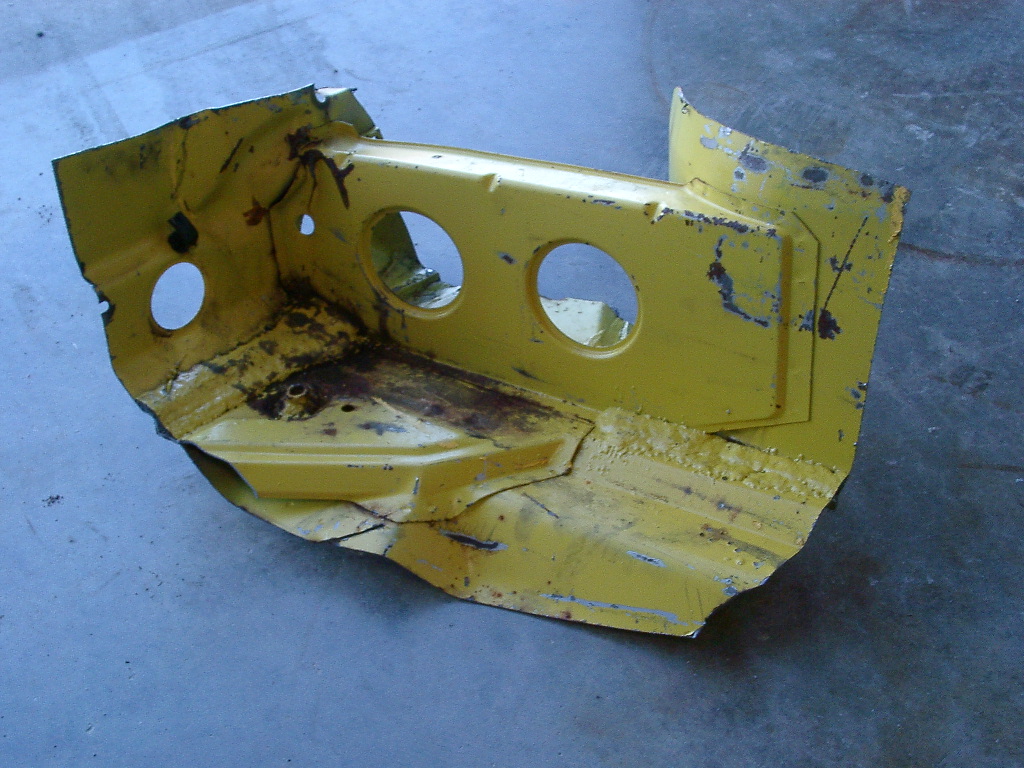 got off to a slow start, didn't get to marks until noon-ish. (IMG:http://www.914world.com/bbs2/html/emoticons/dry.gif) so i decided to just cut out the new front support brackets. mine are shot (dumb PO (IMG:http://www.914world.com/bbs2/html/emoticons/headbang.gif) ) and i got two replacements from John at EASY. of course he didn't drill out the spotwelds, he just cut the frontend around the pieces i needed, so i had to drill out all the spotwelds to separate the bracket from the junk ... here's a before picture (yellow! (IMG:http://www.914world.com/bbs2/html/emoticons/smile.gif) ): Attached thumbnail(s)