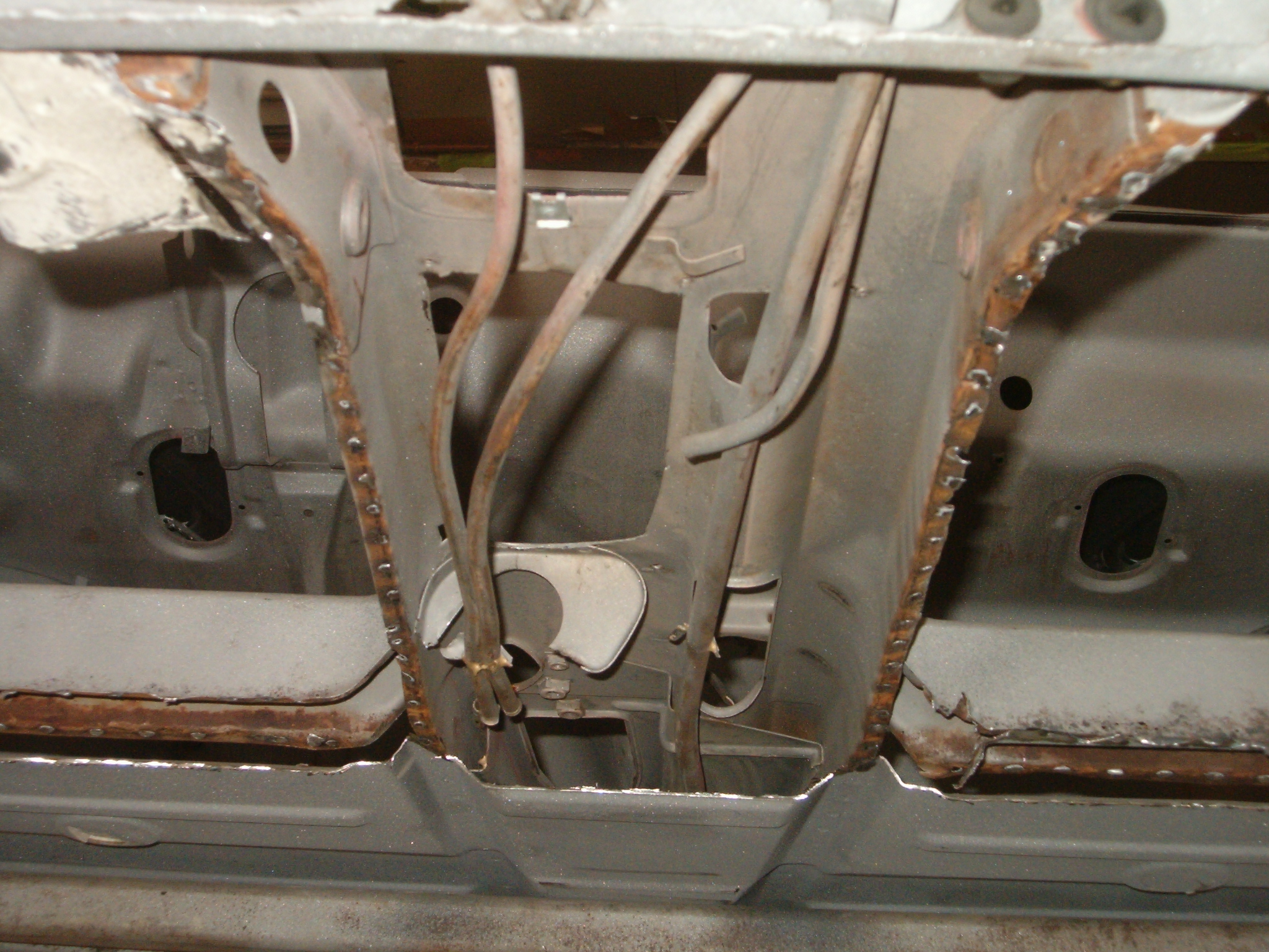 underside of tunnel, floor gone. he also fixed the area where the tubes pass through the hole that is not supported by welding that all up before he put the new floor on. Attached thumbnail(s)