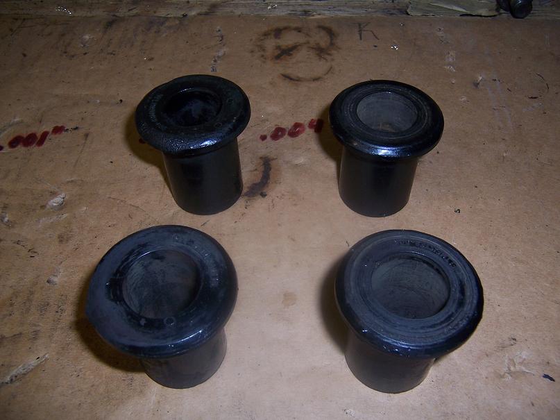 Here are the Weltmeister Polygraphite bushings I took out of the rear after 9 years of service and hundreds of autocrosses. Look at the odd wear pattern in the ones on the left. There is also evidence that they deformed a little.