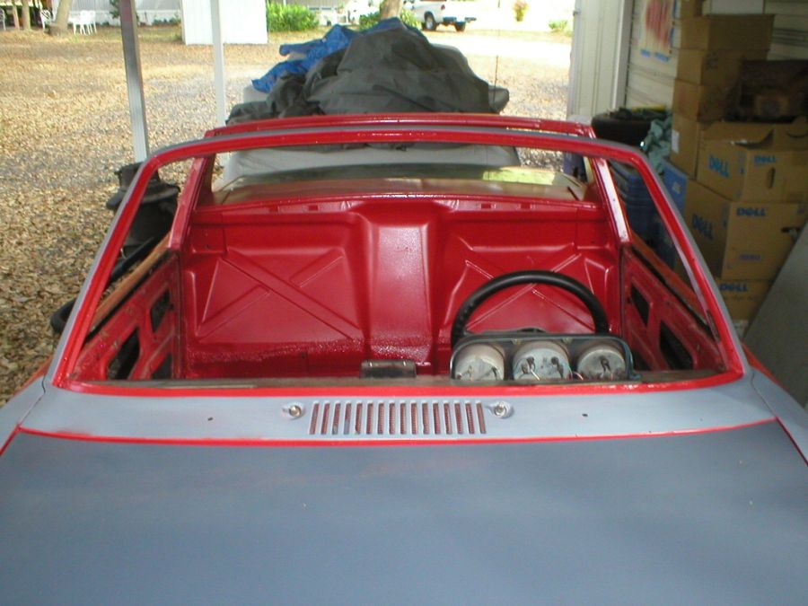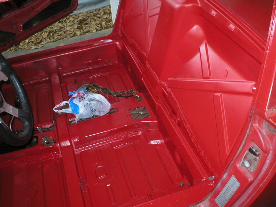 More progress... After a cold spell, vacation, wet weather, I was finally able to paint the floorboard and the rear firewall. With this painted, I'm now able to begin installing the interior parts.
