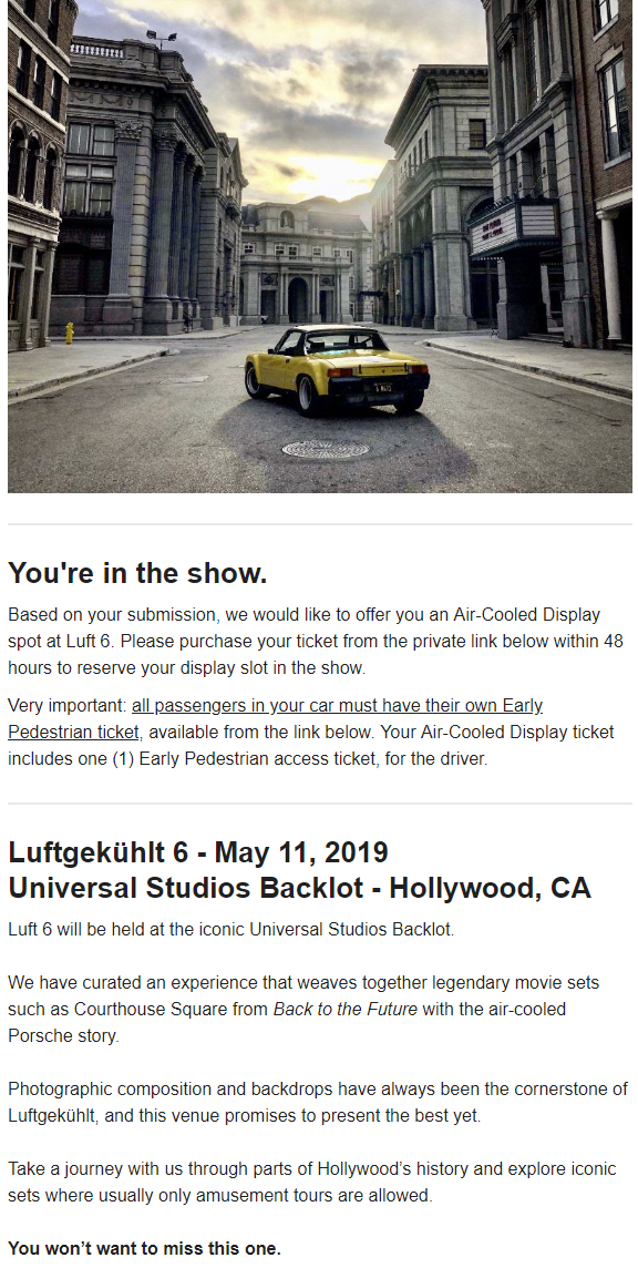 Anyone planning on going? My Green 914 was accepted for the air-cooled display again this year. Is that thanks to Ethan? Are you helping with things again this year? -Steve Attached thumbnail(s) |