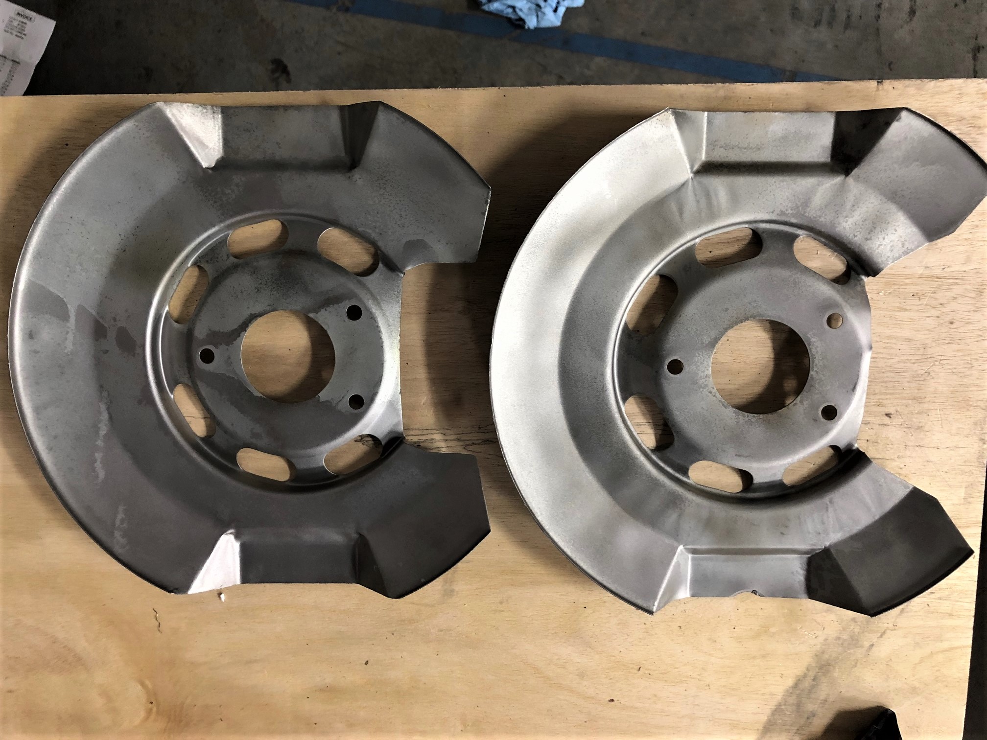 Set of 914-6 brake dust shields, front and rear. Freshly sandblasted and ready for your finish of choice. $80 shipped in the US.