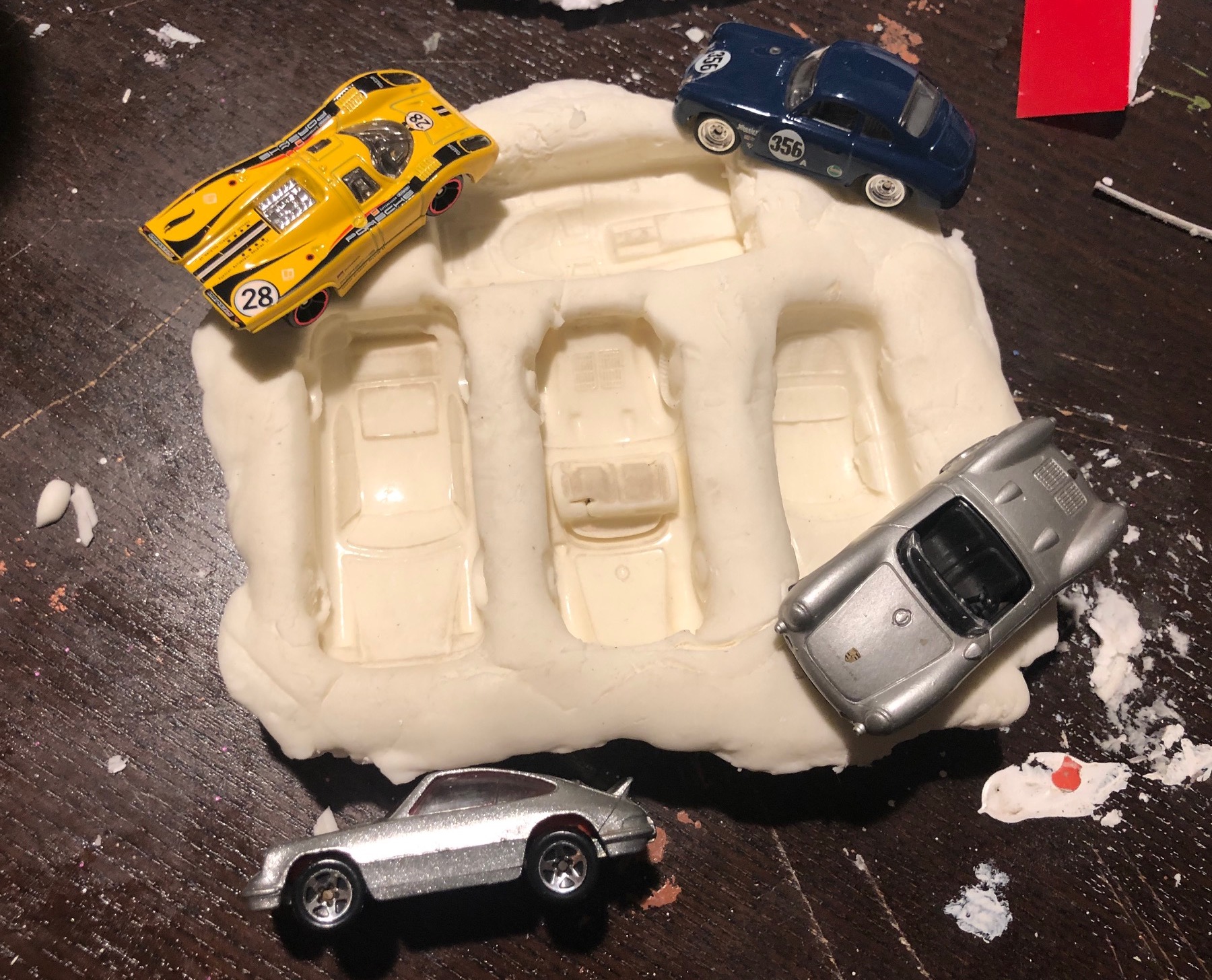 Me and the kids decided to start playing with Epoxy Resin. Avi made little tea cups, I made Porsches!