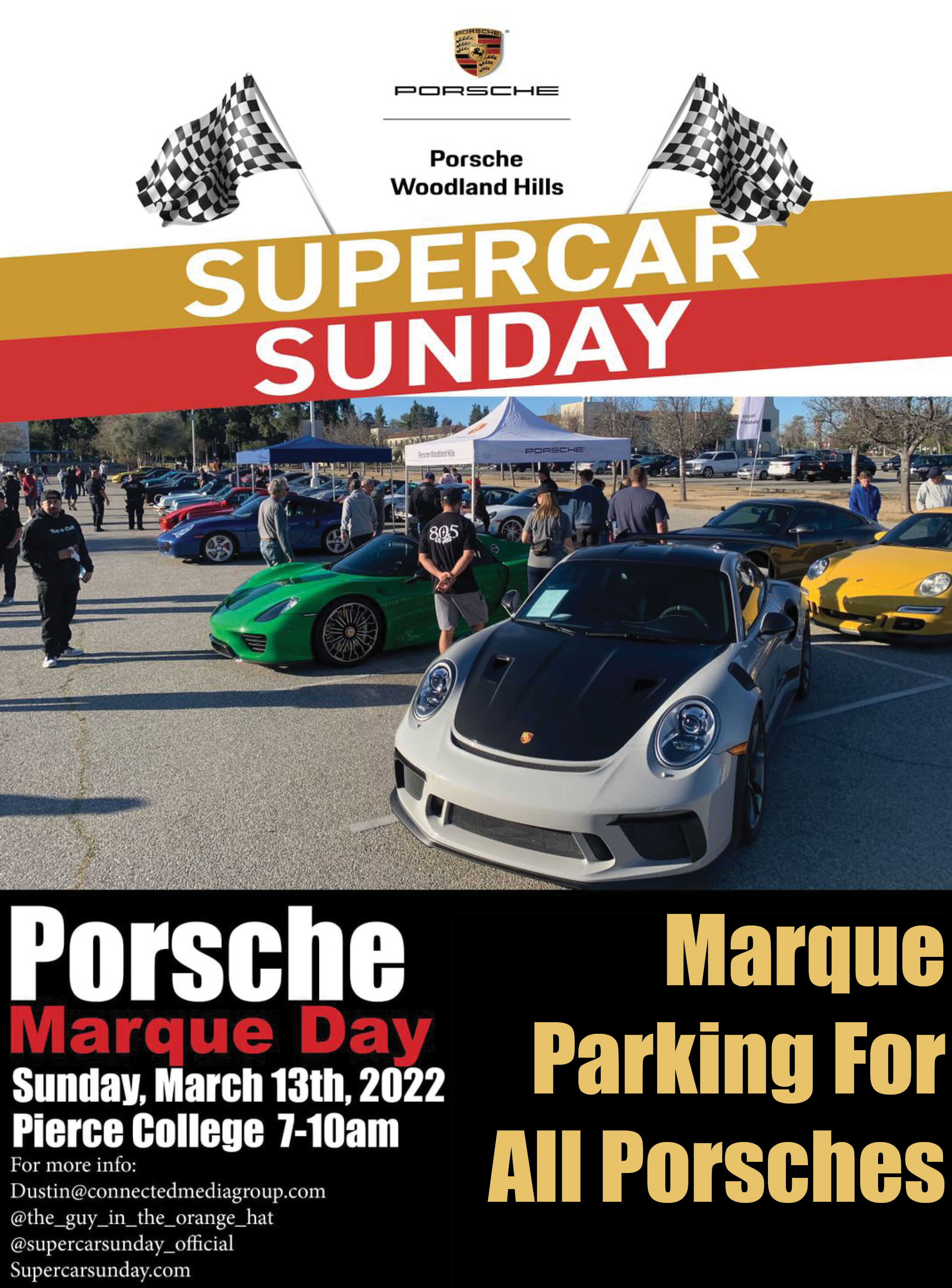 I hope you can join us. Complimentary donuts and gifts from Porsche Woodland Hills as well. Here is a little vid... https://www.youtube.com/watch?v=6Q04PqGfdjs The event is free to attend. 7-10am, this Sunday at Pierce College. Thank you, Dustin. |