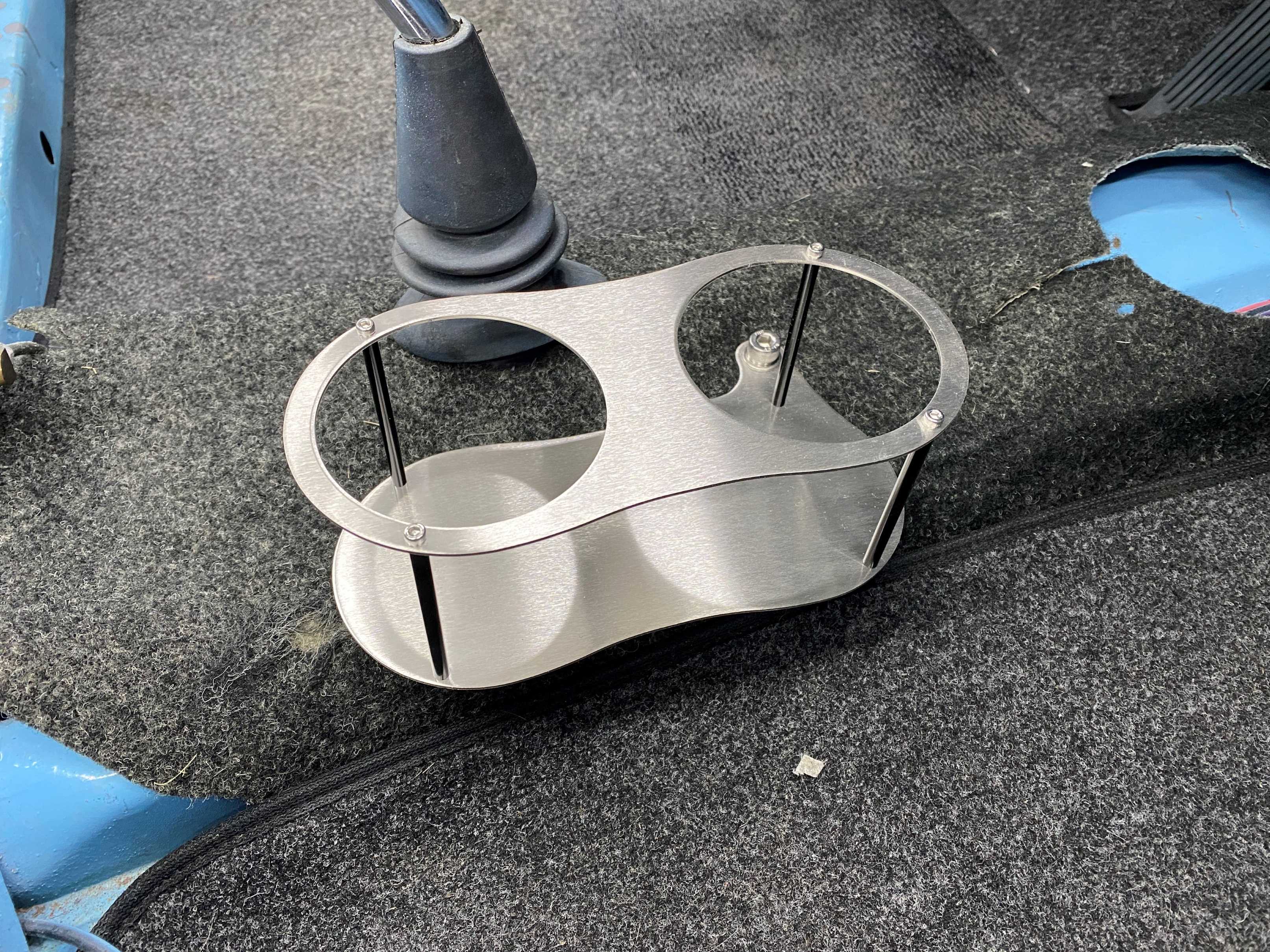 This inconvenience leads to spilled drinks. This new drink holder is a solution for that; It was designed specifically for our cars. It attaches to one of the existing mounting bolts for the shifter body, which offers sturdy mounting. Quality was a priority during development. After testing with an aluminum prototype, it was found that aluminum was far too flimsy, and if acidic drinks such as coffee were spilt on it, the metal would discolor and corrode. This left stainless steel as the best option. It offers a solid build, and long lasting durability. If the metal should ever discolor, it can be maintained with regular store bought cleaning products due to its relation to everyday stainless steel kitchen appliances. Details: Brushed finish 304 stainless steel construction. x2 3-⅛ Diameter openings. Fits most disposable drink cups. Conveniently mounts next to the shifter. Complete instructions, easy installation. Made in USA. Disclaimer: This drink holder will not fit 914’s with a center console. A separate version for cars fitted with a center console is currently in development. Installation of this drink holder requires a small hole to be cut into the carpet. $110, Including Free Shipping PM me through the forum to order. |