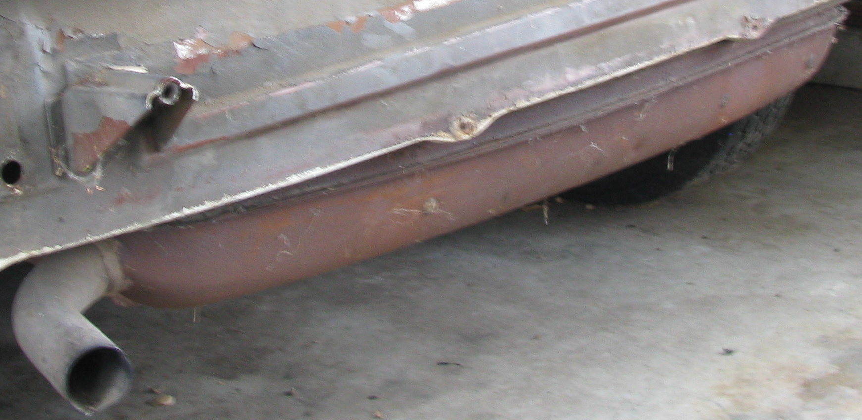 Did it originally or ever have a chromed or polished or semi-polished or stainless steel tailpipe section? In the photo at the link below for PP's Dansk "OE style" below, it sure looks "shiny" to me!? http://www.automotion.com/product.asp?pf_i...mp;dept_id=4573 I bought the 2.0 OE style Muffler in the pic below from Midas back in 1980 with a Lifetime Replacement Guarantee. I think I recall that they sourced it from either Dansk or whomever was the Porsche OES at the time, so it was good quality. Pat - this one was also not painted at the time it was installed, but had some sort of a protective coating on it, which has obviously failed at this point. So priming & painting seems like a good idea to me! I suppose that they'd still be on the hook to get me a new Dansk whenever it should fail, but it's still solid at this point - the car having been stored in my SoCal garage since 5/85 due to the body damage above it (& a new family back then). Although it looks rusty - its just surface crud that I can steel wool off & refinish with the hi-temp primer & grey paint noted in this thread - at the time I have to pull it off to redo both sides of my rusted-out heat exchangers - but I'm unsure how to do the tailpipe section? Anyone out there know how I should finish the tailpipe on this? (IMG:style_emoticons/default/confused24.gif) Also - any leads for some new OEM/OES or Stainless `73 2.0 Heat Exchangers? AA has SS at $605 per side, but that seems awfully steep to me! (IMG:style_emoticons/default/huh.gif) |