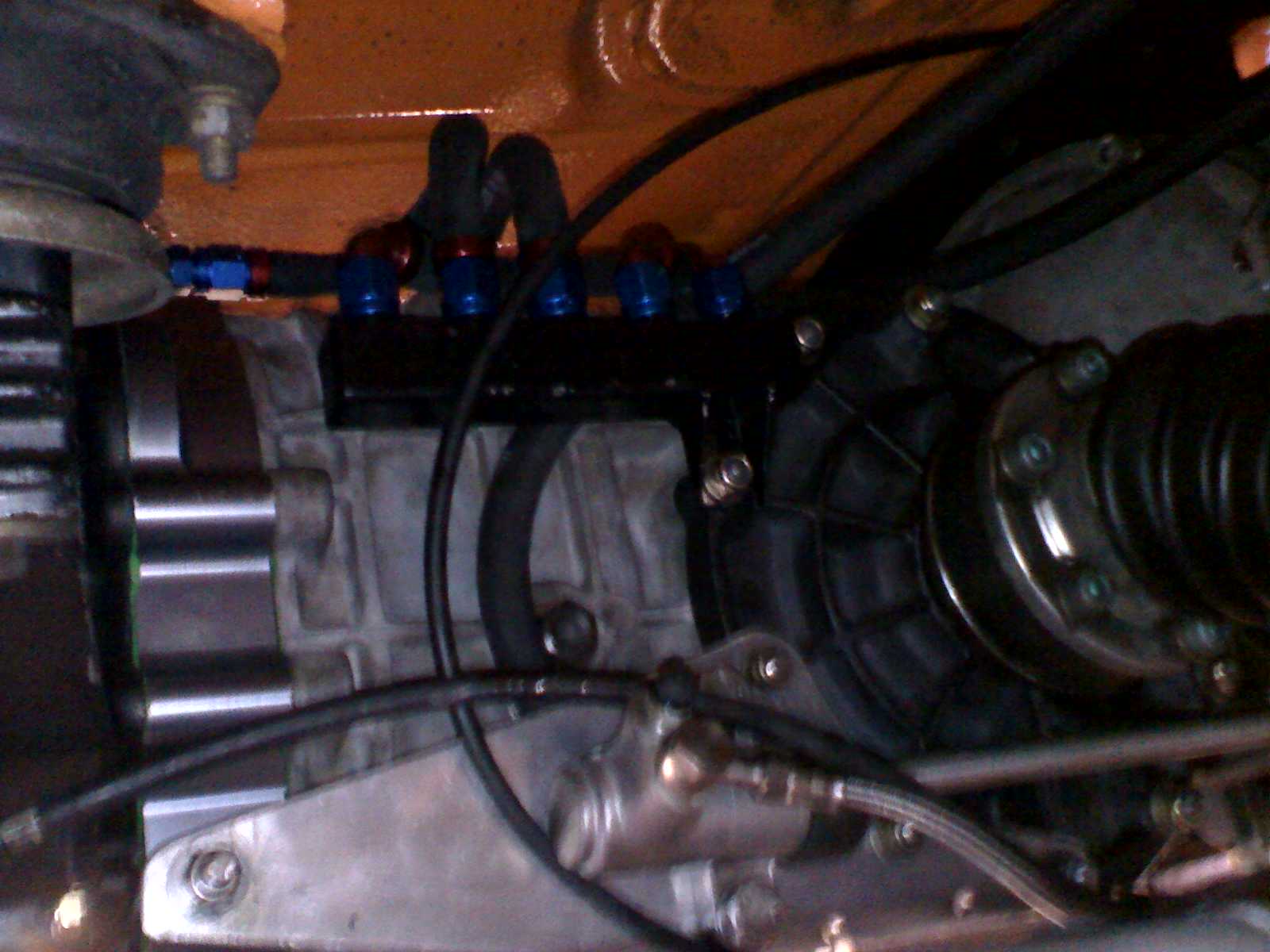 Did I read correctly that one could use the fill and drain plugs tapped for cooler lines for in and out? This sounds like a step in the right direction, as i could install everything, and then install the internal spray bar later when I have the tranny out. Cooling the oil without actually spraying it directly onto the gears still sounds like it would make a difference. |