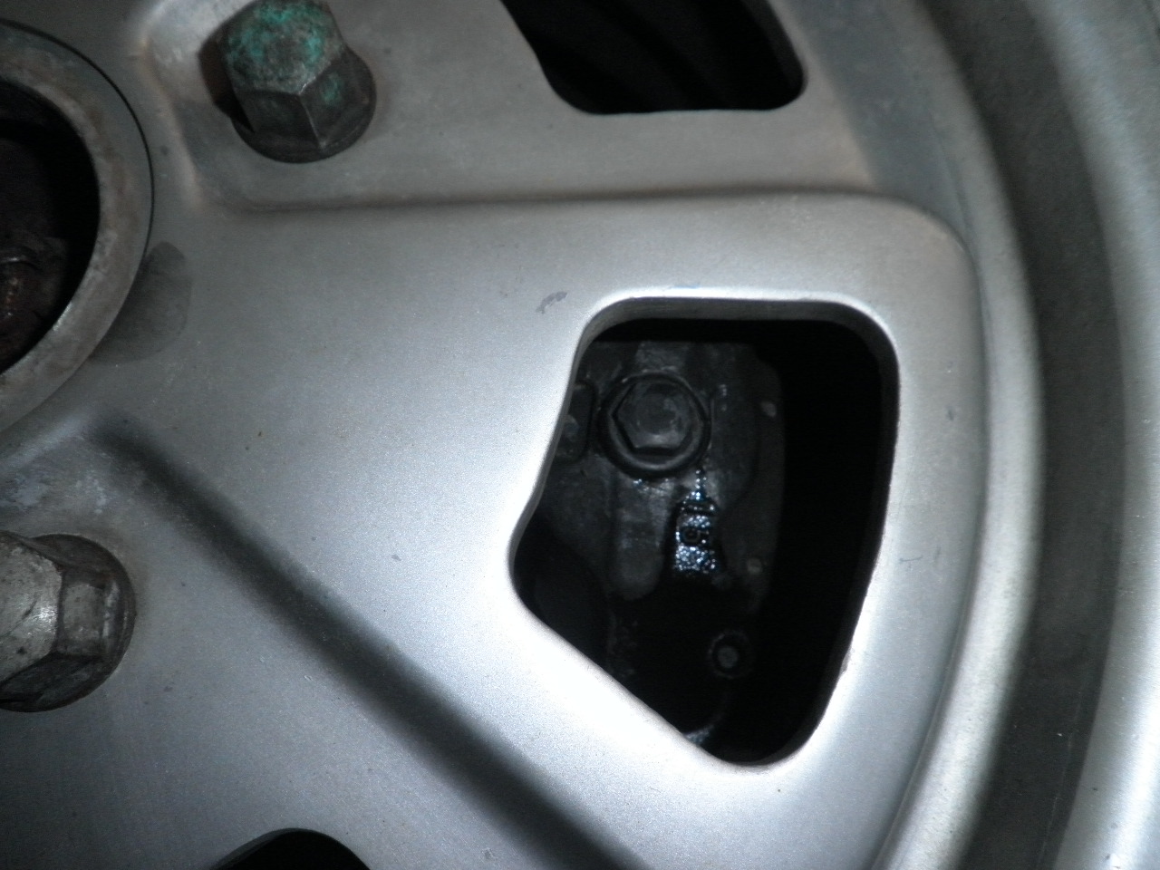 This looks like leaking brake fluid but seller says he didn't clean up after bleeding brakes the morning of the inspection...looks reasonable cept the bleeders on the other side of the caliper ..shouldnt be wet there (IMG:style_emoticons/default/confused24.gif) |