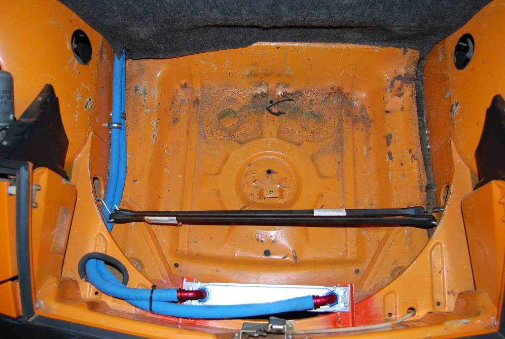 How do you expect to add heat with headers and the oil cooler lines running through the long? Headers will come off. (maybe i'll make a few bucks to finance other inevitable repairs...?) oil cooler lines I can unbolt @ the engine -- they just hook up via a sandwich plate at the oil filter. I can pull them right into the front trunk, they're not secured to anything. |