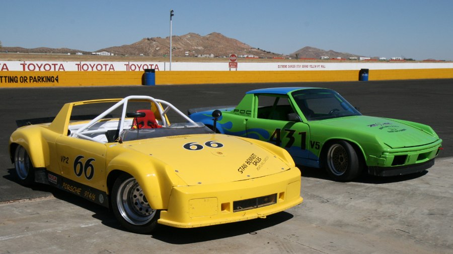 Here are 2 new 914s coming to the clinic and the STS event Sep 25,26. We were at WSIR yesterday for Test & Tune. #66 is a /6 currently running a 2.7L, the green car is a 2.0L (ex Steve Willie from San Luis Obispo) Paul Deneen '71 911T '74 914 Sal Trevino '71 914/6 Cool! I look forward to meeting you guys there. My car is the Phoenix Red #673. Look for the guy in the white helmet - that's me (LOL). What run group will you be in, if you know yet? Chris, Don't know what run group we'll be in. I guess that will be up to the instructors. We both have some competition background, but no current license. We'd like to move up to cup racing eventually, though these two cars would obviously be in different classes. -Paul |