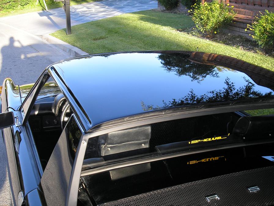 Both of the cars in the family have the sanded and match paint. Kathy's Bee also has the original top but she prefers the glossy one. Done by the body shop at time of paint job I've been considering adding sail panels and a black top again to my white car. The original owner, Ted Tidwell, sanded and painted the top white in 1971 as he lived in Augusta Georgia and said the summer heat on a black top and no A/C was a *itch. |