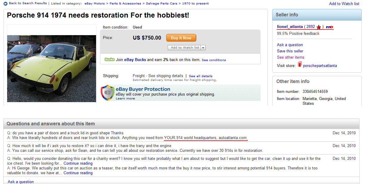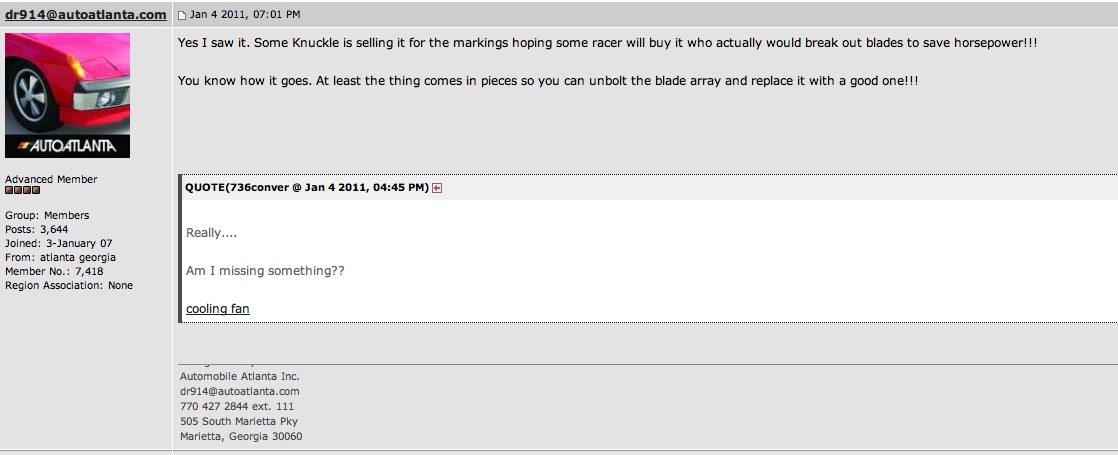 "Automobile Atlanta since 1978 providing the best in 914 parts to the community." **Cough-Cough** ... One more |