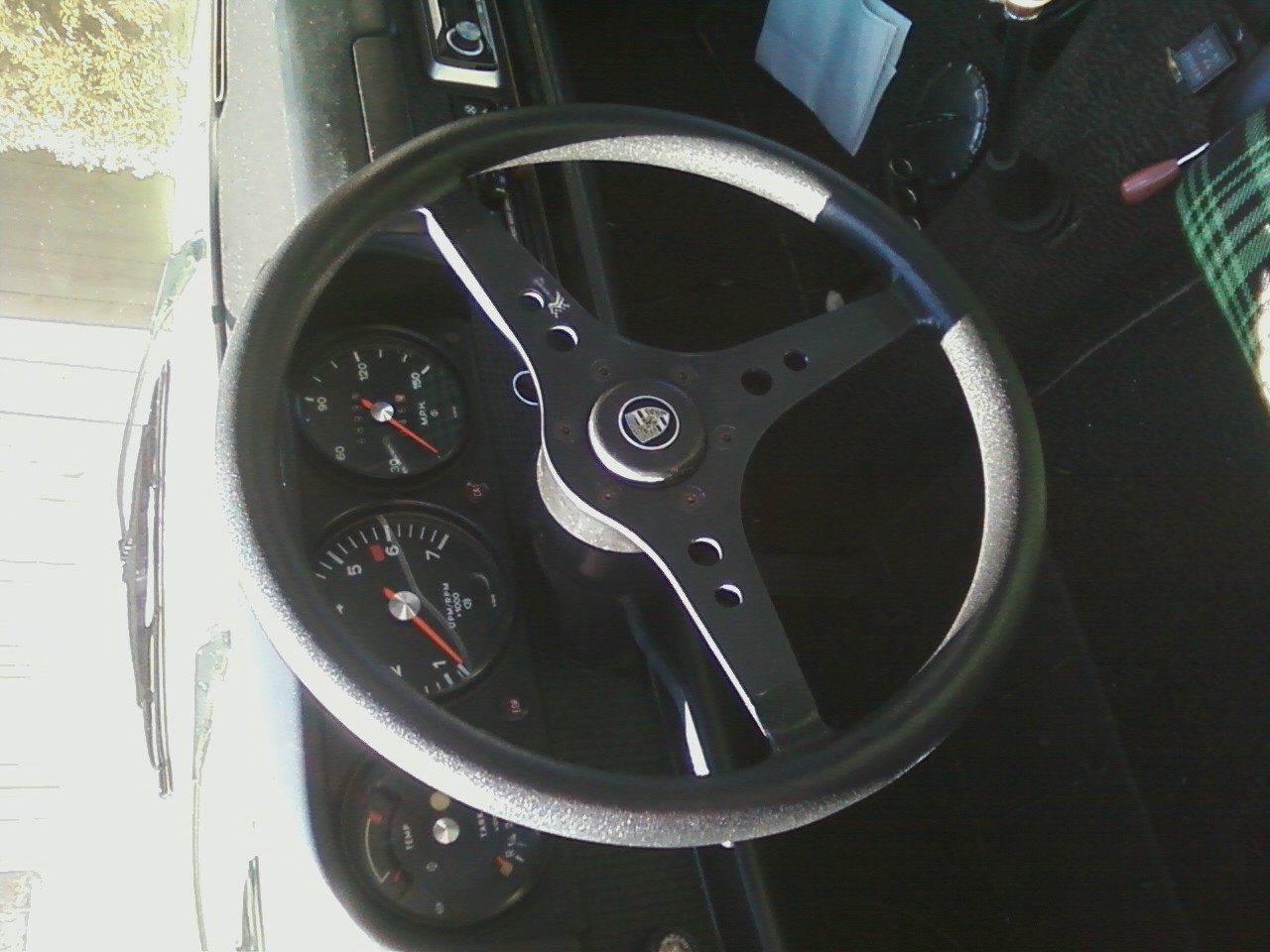 I searched everyware for Corinthian leather, No luck. http://en.wikipedia.org/wiki/Corinthian_leather So off to the auto parts store, and found , gheto swade. Otherwise known as spray bedliner. looks and feels fine for my driver. It looks freakin great (IMG:style_emoticons/default/w00t.gif) !!! because of the thin spokes your steering wheel would be a perfect candidate for 'wheelskins' leather covering!! They sell them on ebay in whatever color, grip and overall diameter! http://www.ebay.com/itm/Porsche-Cayman-Whe...=item256de2ec6b |