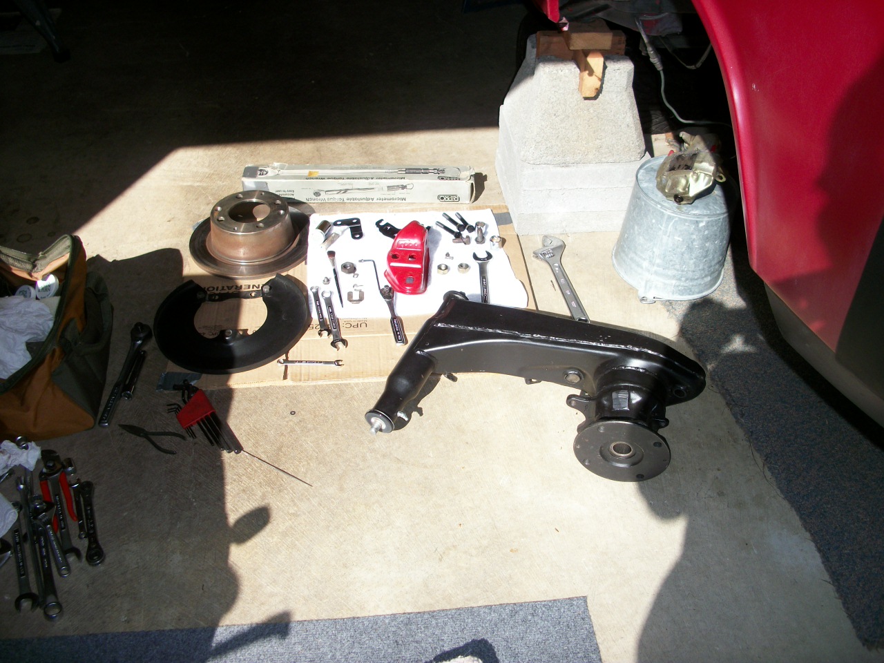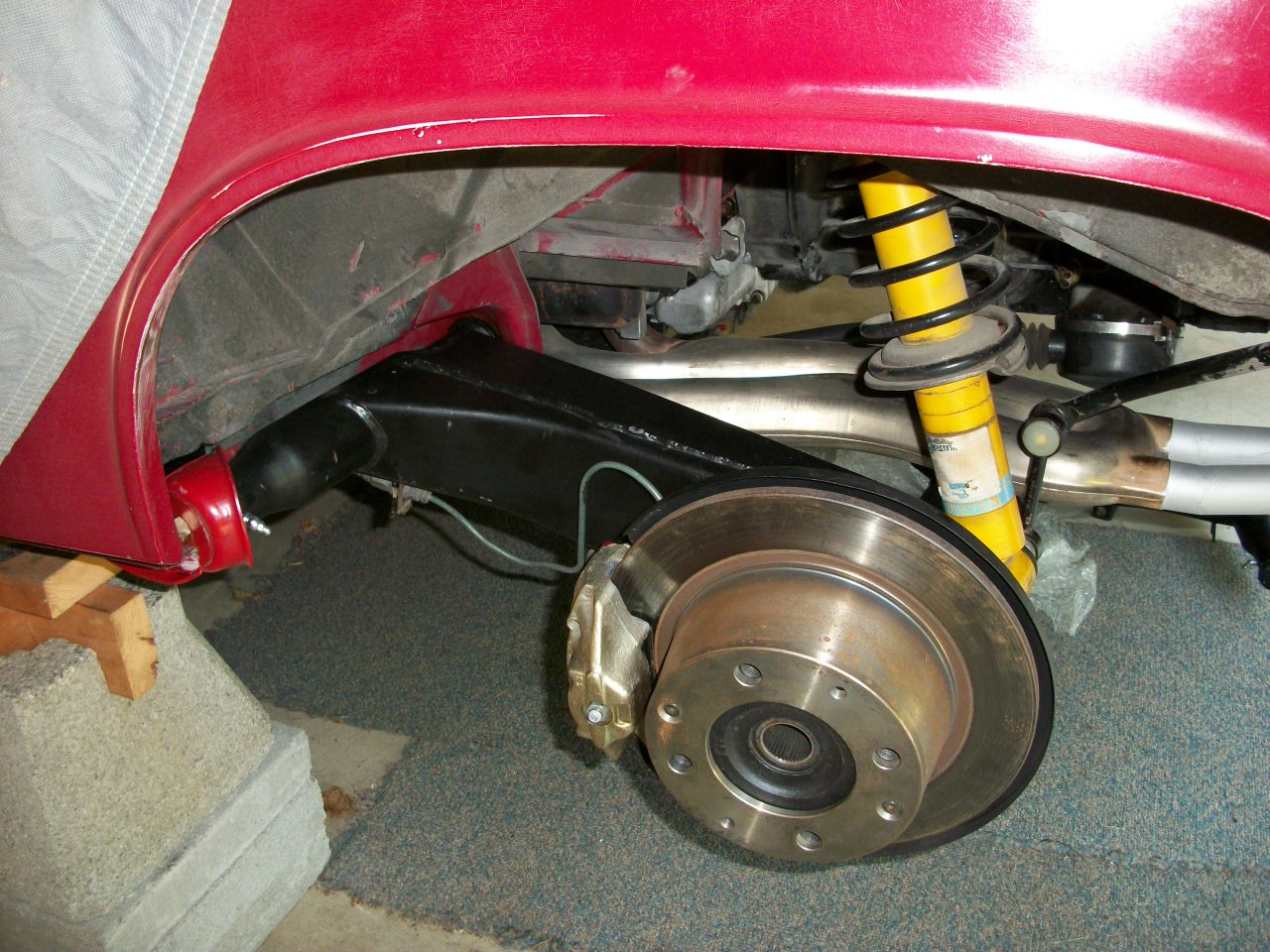 First I would like to thank Eric at PMB for the excellent service and work that he provides. I had Eric do these back in 2006 with rubber bushings and new bearings and sandblast and paint. They were still looking great. but the rubber bushings had something go wrong and I had up and down movement in the arm along the shaft axis. Talked to Eric and he said send them to him and he would put the new poly bushings with zerk grease fittings for me. Free of charge!! What a guy! (IMG:style_emoticons/default/smile.gif) Got them back last year, but between my bad back and other things that seem to get in the way, I haven't reinstalled them. Started yesterday and got the driver's side on. Just need to put the axle back on and tighten it up some so I can go back to my rough alignment set up. Had everything all laid out and ready and made sure all of the bolts, lock washers, tools ,etc., I needed were handy. Got to the dust shield and one schoor washer was missing. Now where did that go, it was just here! Looked and looked and could not find it. Had no more schoor wasshers so I used a flat washer and a touch of locknut to keep it from backing out. By the time I got the arm on and the brakes on, my back was in turmoil, so I stopped for the day. Putting everything up and the cover back on the car, the schoor washer fell to the floor. Now how the XXXX did that washer jump to the roof of the car? That's where I had the cover folded back out of the way. The shaft in the arm turned by hand after greasing, tight but not too hard to turn. I guess that would be a good thing. Today I hope to get some more done. Hope it goes better than yesterday. Tom Attached thumbnail(s) |