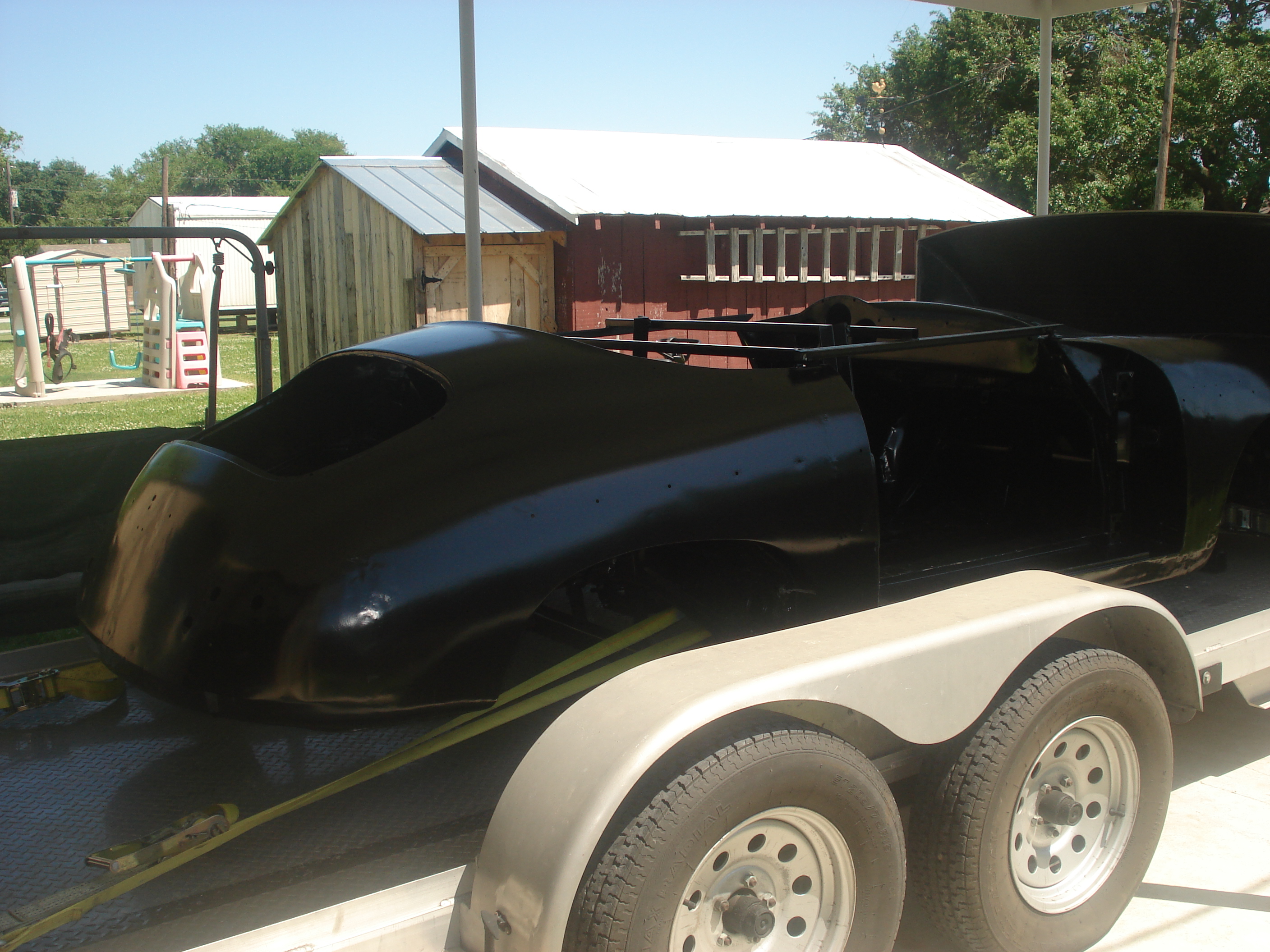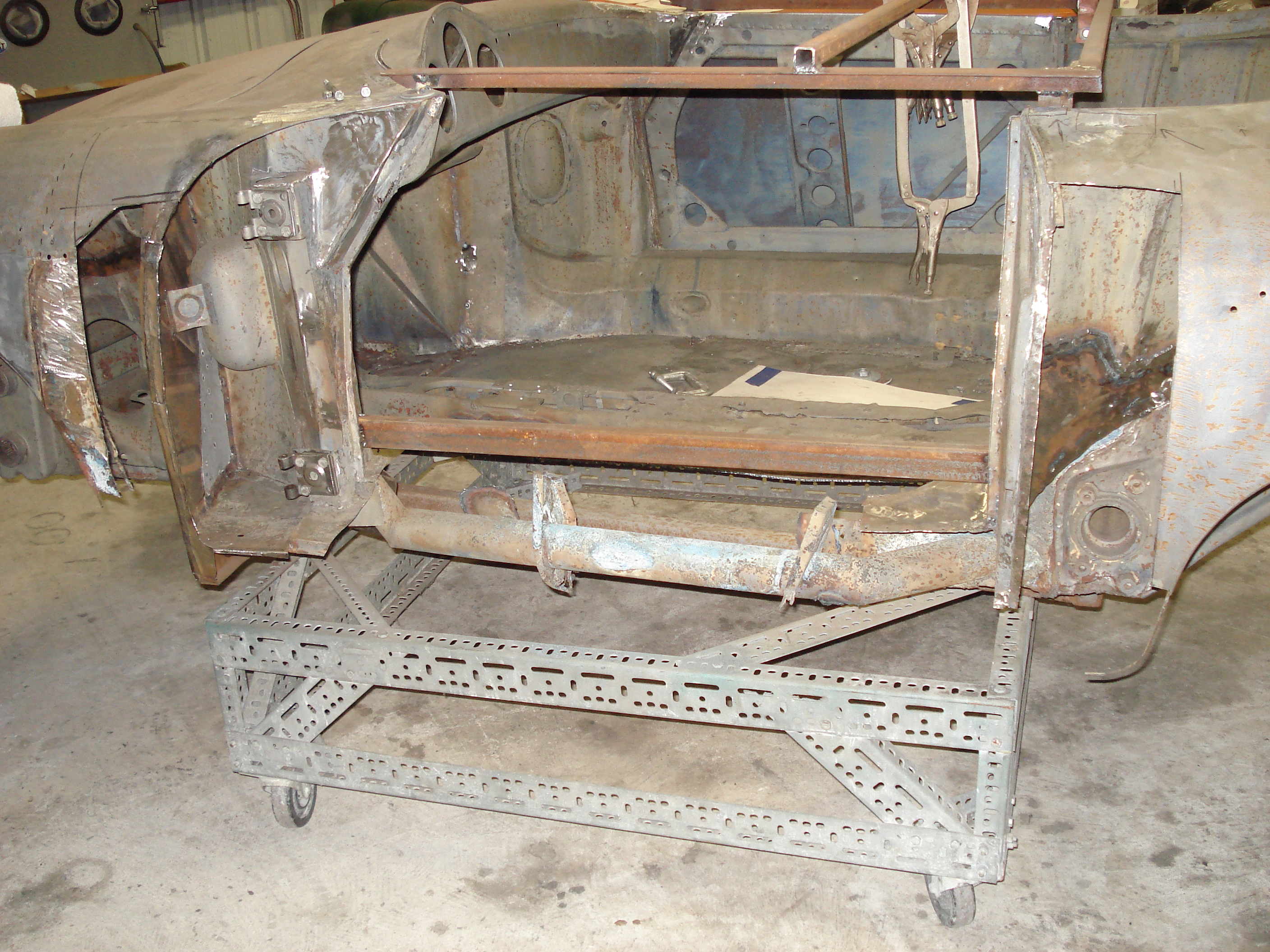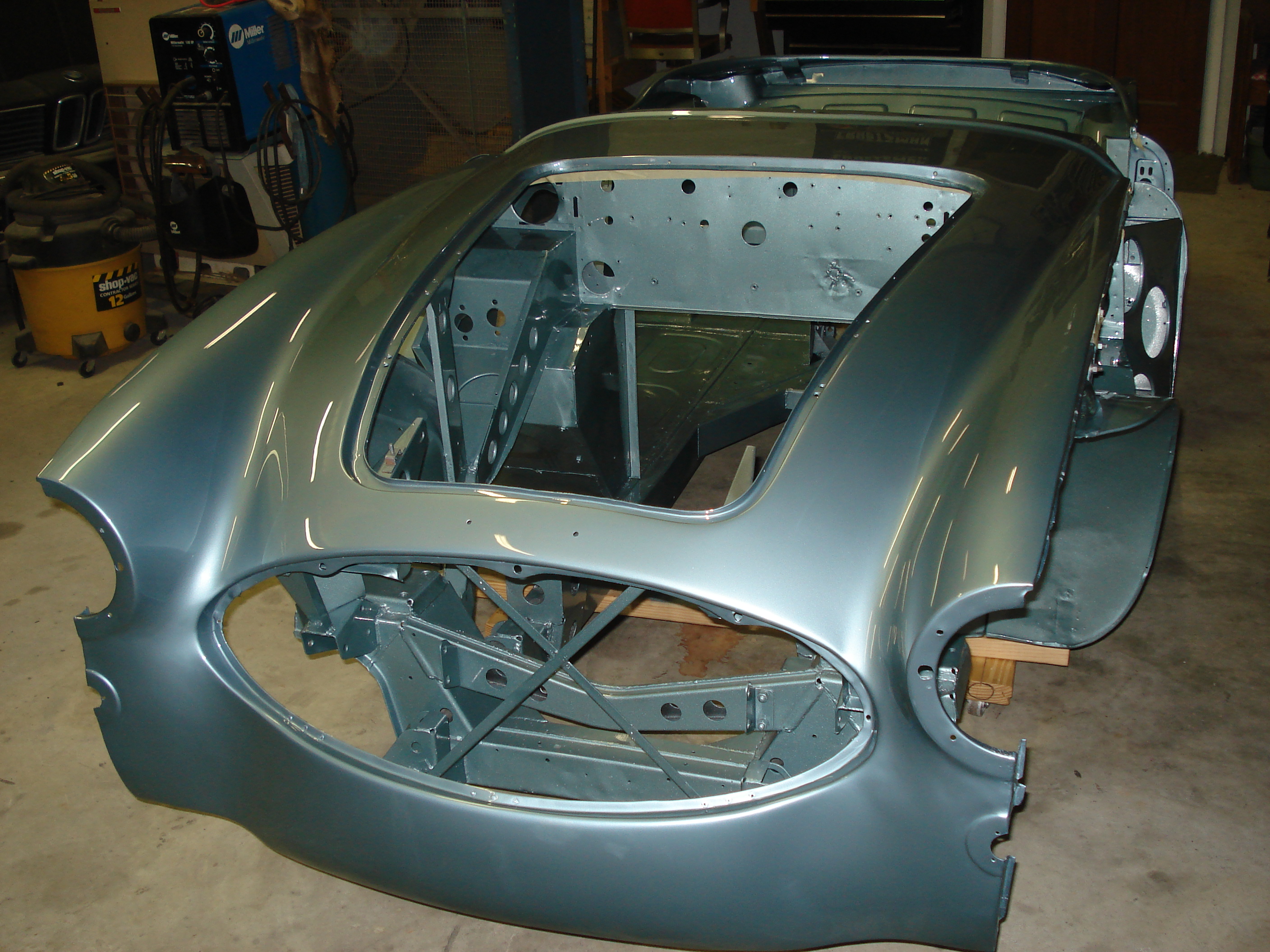 We are only 4 hours away so we had the luxury of dipping the car and picking it up, doing the rust repairs , and returning the car a few months later for re-dipping and final E-coating. This way everything is sealed in continuous E-coating after repairs. Heres the Austin Healey after e-coating |