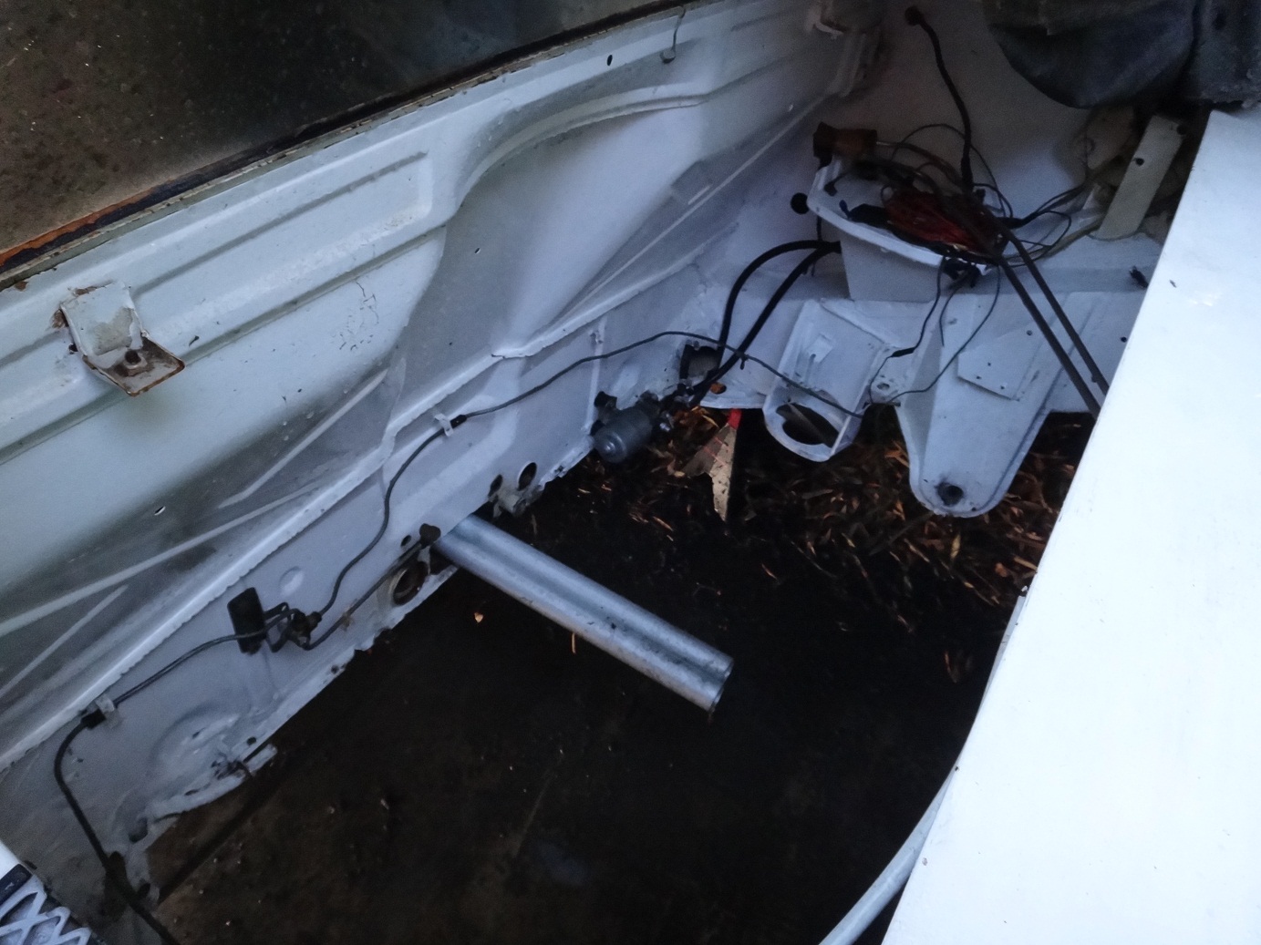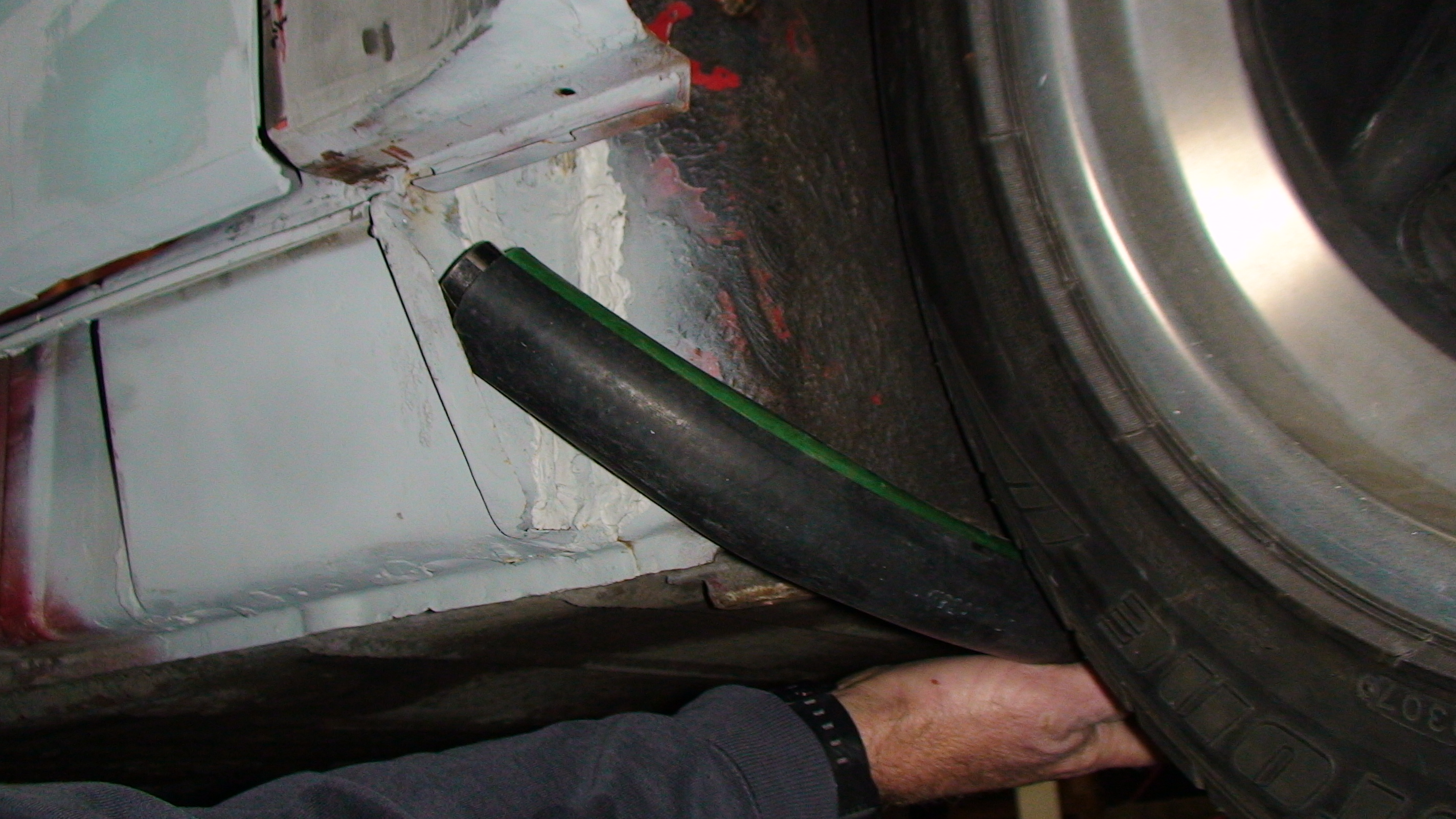 The front is harder. Only after I replaced this lower A pillar from PO A/C install, I consider taking a hole saw to it. But I would weld a tube through the hole for the hose or a smaller tube to go through. The socket in the photo is the stand in for the smaller tube.