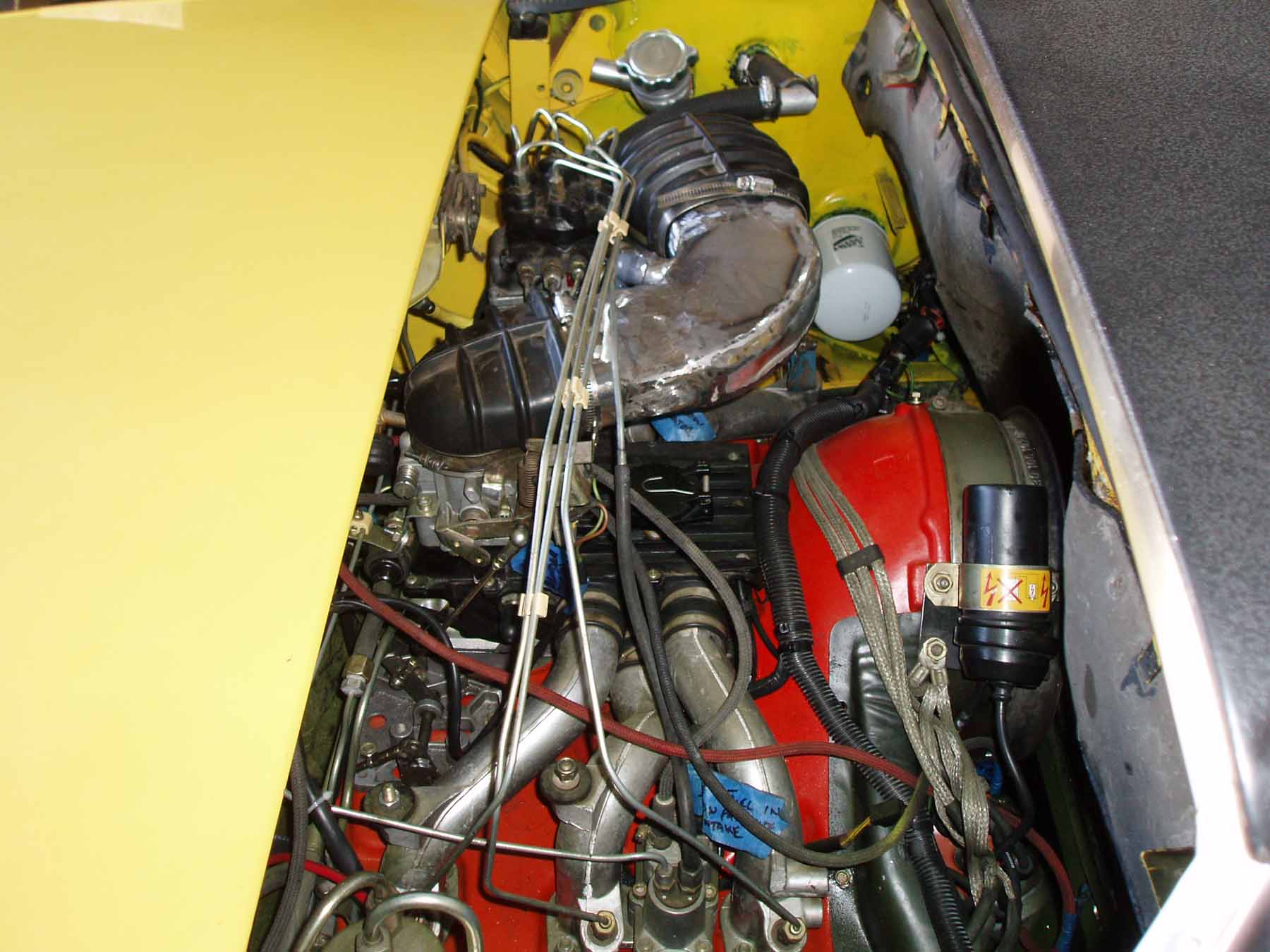 I made a wooden block in the shape of the cut end of the intake boot and formed the metal to match the block by bending it and hammering it. It was a bottom piece, two end pieces to match the wood block, side pieces and a top piece all bent and welded to create the shape. I had to do the two end pieces seperate to match the boot pieces and then attached to bottom and filled in the remaining metal. The fill pieces didn't need to be perfect just air tight! Then I ground all the welds sanded it smooth and powder coated it to match the car! I felt the powder coat was the best way to get a smooth surface for the boot to clamp snug without leaking! I hope that helps! |