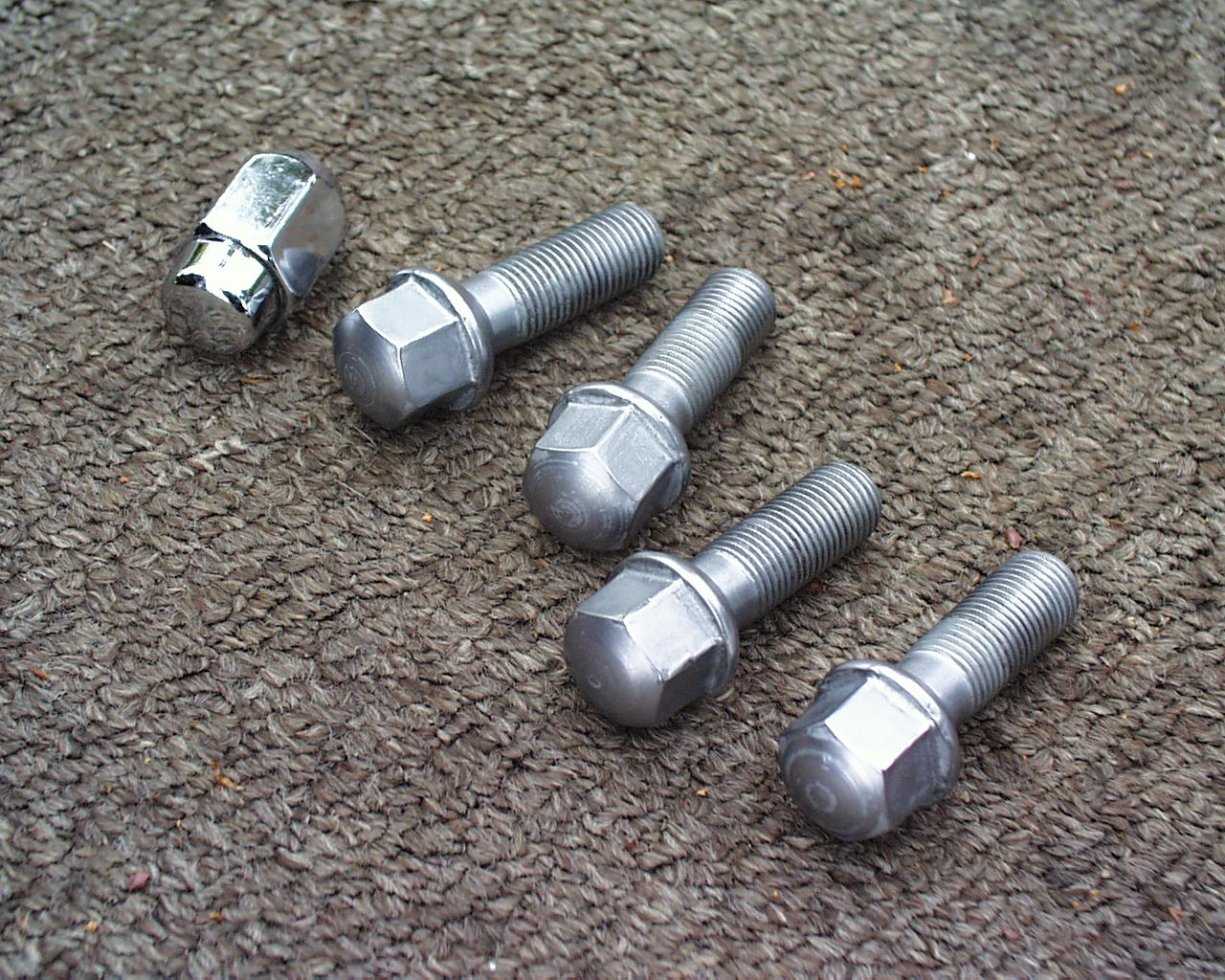 I decided to throw my lug nuts in my Eastwood media tumbler and polish them while I got my new tires mounted. Used the green media with speed cleaner for a few hours. rinsed that off and added the speed polish liquid. Finished them off with the dry polish media. I don't have a real good before pic, but I'm pretty happy with the results. Thinking about adding new 914Rubber dust caps. Chrome lug pictured for comparison.