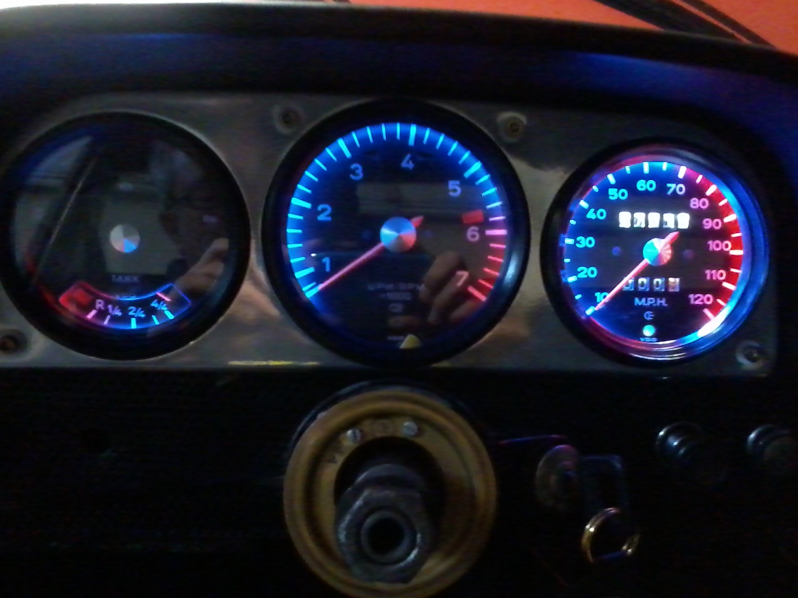 I think it would be sweet if someone put in some kind of sensor on the end of the needle so that as the tach swept past the digits, the LED's would light up in succession around the gauge! It would be awesome at night.