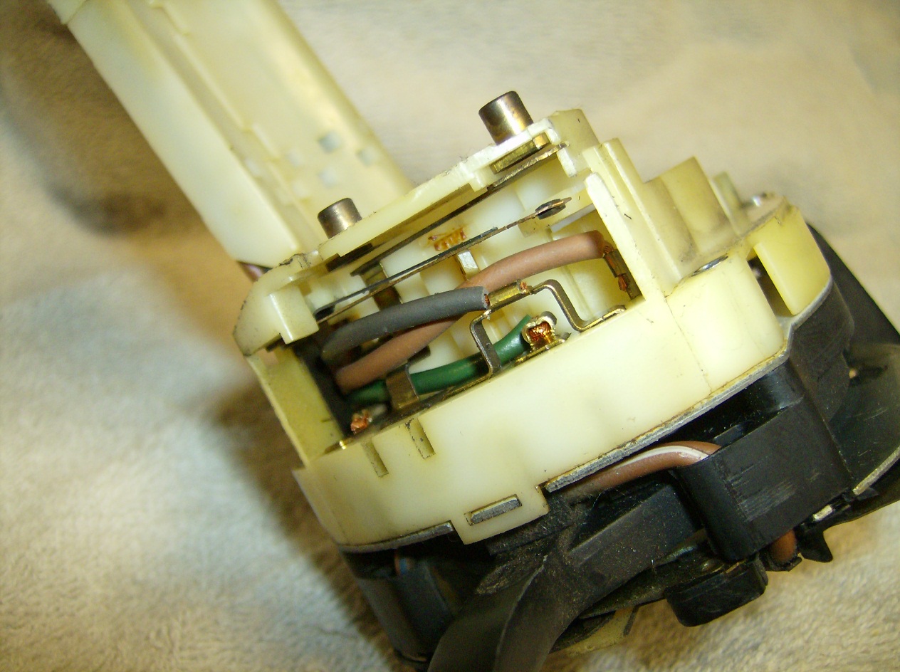 High - black/white and black/yellow Low - black/white and black Off - green and black Intermittent - green and black Pull for flick wipe - black/white and brown Black/white must be the 12 volt power to the switch Not sure if anyone has a wiper switch laying around that the could check Off and Intermittent positions, but something doesn't seem right. BTW, I saw no definitive ground on any of the 4 screw posts. For giggles I checked for ground at each screw and each checked out. |