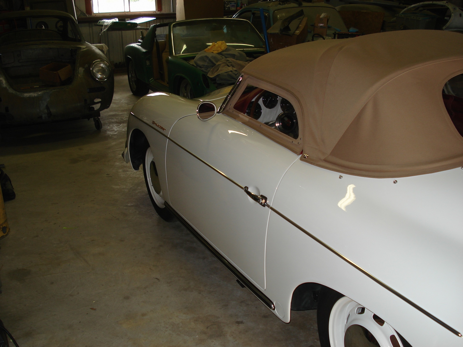 Yow. That's not only gorgeous but seriously special. (IMG:style_emoticons/default/pray.gif) Carrera Speedsters with their OG engines are pretty scarce... so many had swaps when they were cheap, nobody would have imagined $100K for those lumps. Now of course it's big bidness. Even though I've seen a bunch of 'em in the last decade, whenever a lid opens to show one it's hard not to drool. I've owned a number of speedsters, back when they were cheap. I've serviced and driven any number of replicas, including a repop Convertible D that was factory built in Canada. They're just not the same thing. For a Poseur, they're fine, but I can show you how to spot a fake from across the parking lot. Same for Spyder kit cars. Having worked on and driven the real deal, the kits, while pretty nice, just don't get it. Fiberglas kits just don't feel like steel or aluminum, and kits are, well, kits. As for the '72 Ghia being better than a '56 Speedster, good luck with that one. Although the Speedster had swing axles, it had about one and a half times the HP, shorter gearing, about 10 times the brakes (Porsches had more brakes than the Vettes of the same years), a lower CG, and a substantial weight advantage. Cooler, too. And better seats. The Cap'n (IMG:style_emoticons/default/agree.gif) This. Unlike many in the 356 world, I've no problem with replicas... hell, I'd own a Martin & Walker 904 or WerksCars 906 tomorrow if I could. But apart from a handful of manufacturers like Intermeccanica or Beck, most Speedster copies are lacking. The majority just look good. Sure, beautiful shape and if you like them, great... that's reason enough to cruise one. But that's all you can do with it. It's not anything like the engineering and construction of what it mimics. BTW, I run against real Speedsters in historic and vintage... tell guys like Skirmants their cars are slow and don't handle. Better yet, try to keep up with them in that class. So, after reading this http://www.karmannghiaconnection.com/72roadtest.html it was a reminder of why I skipped Car & Driver in favor of Competition Press and R&T back then. Forty years on, comparing a 356 to a KG is still ridiculous. Sixteen years of automotive development is huge... it's not a serious comparo, just fluff to pump up Karmann Ghia sales. Bet VW America was happy to suggest such a "test". Anyway, I prefer hardtops. (IMG:style_emoticons/default/sunglasses.gif) |