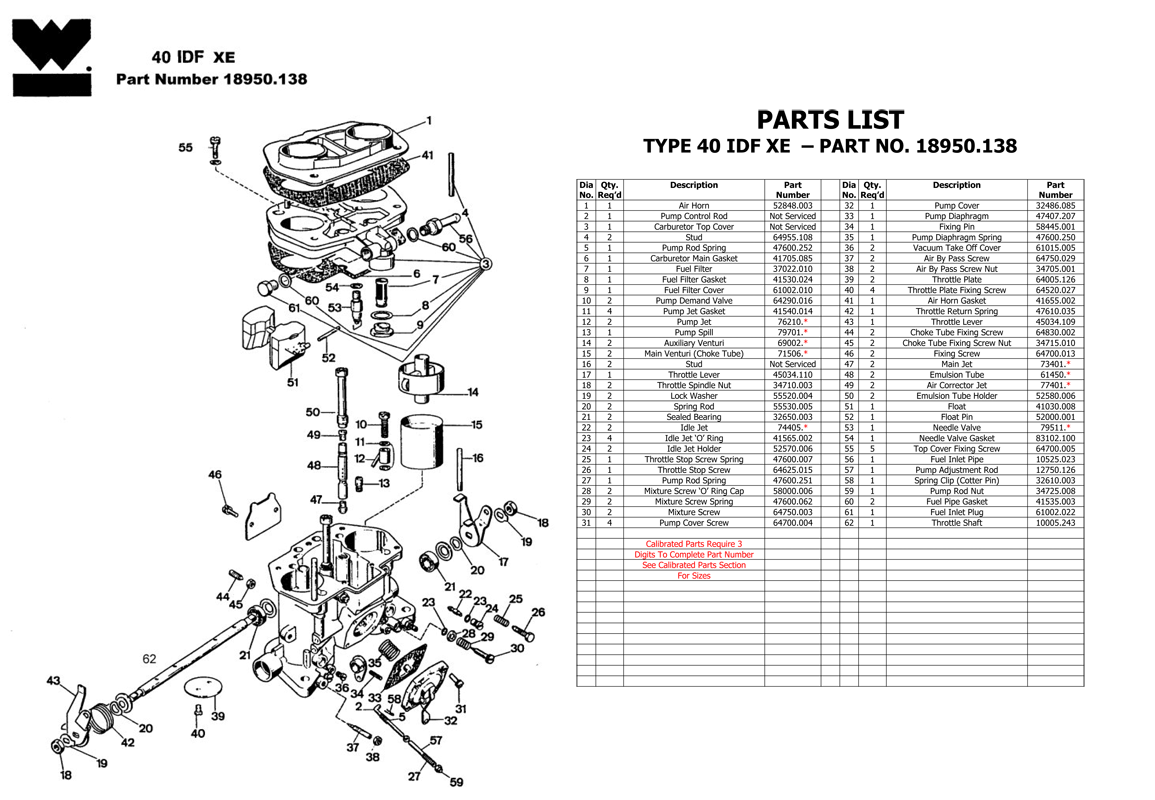 Another item, assure the floats (51) are adjusted properly. You'll need to remove the carb tops to access them. As a last resort, you may need to remove the carbs, partially disassemble them (remove the floats and all jets) and boil-out the carb body to clean out any clogged ports. As to which jet sizes folks run, again, don't do anything until you have a baseline reading with the configuration you currently have. You may already be jetted for the optimum A/F ratio. Each engine is different and there isn't a single magic bullet configuration to follow. Buy a Weber carburetor book (IMG:style_emoticons/default/idea.gif) |