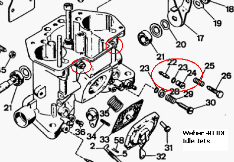 Gary, I wouldn't be 'changing' any jets until you get it running stable and have the air/fuel ratio checked out. Just go through the jet cleaning process first. Also, don't over-tighten the jet stack when reinstalling in the carb. I was using the term 'emulsion tube holder' (instead of 'jet carrier') as the Weber diagram posted on a different thread called it such. Didn't want to add any additional confusion (IMG:style_emoticons/default/confused24.gif) Yep, different terms add to the confusion 'emulsion tube holder' is correct as well, for some reason PMO and others call it a "main jet carrier" (IMG:style_emoticons/default/unsure.gif) |
