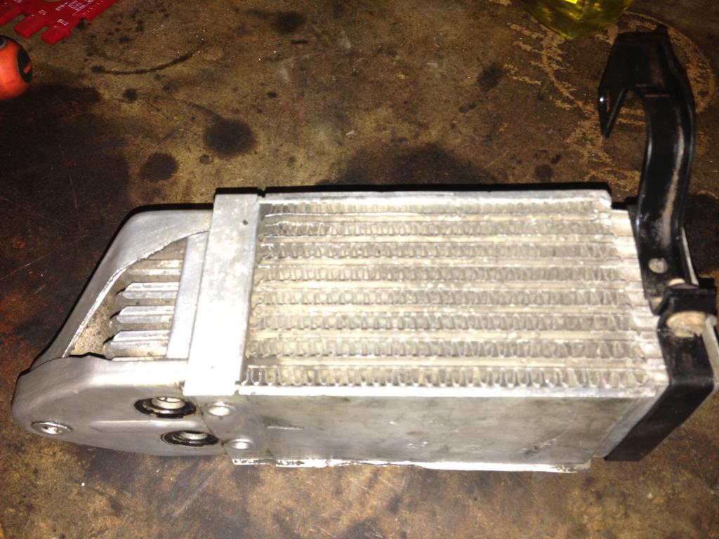 Tonight i got both heads put on and torqued down, I reused the head gaskets because the ones that came in the engine gasket set were too small. The old ones were in great condition, i cleaned them up a little and they looked fine to use. Cleaned up and rattle caned the deflectors and put those back on too. Then cleaned up the oil cooler a little bit so it was shinny again (IMG:style_emoticons/default/biggrin.gif)