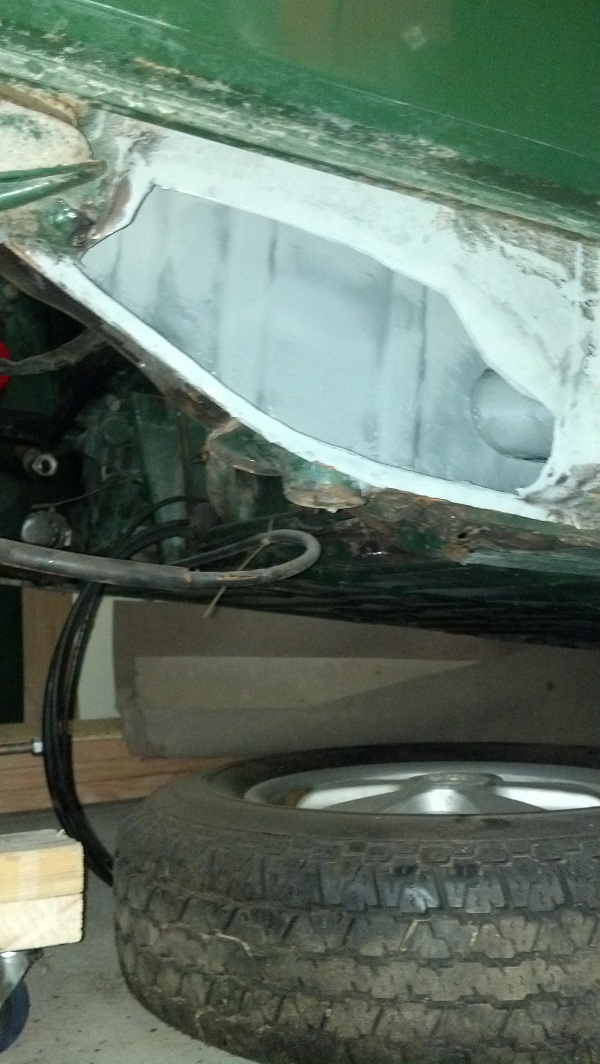 (IMG:http://www.914world.com/bbs2/uploads_offsite/i156.photobucket.com-14477-1366568596.1.jpg) (IMG:http://www.914world.com/bbs2/uploads_offsite/i156.photobucket.com-14477-1366568596.2.jpg) SO I was think about trimming the AA wheelhouse repair piece like this but like I said before I'm going to have a collision buddy check it out first to see what is the best way to tackle this. I really rather not have to take the suspension mounts all apart as it's really solid and seems to be true. (IMG:http://www.914world.com/bbs2/uploads_offsite/i156.photobucket.com-14477-1366568597.3.jpg) I'm doing the same thing. I cut my new metal to fit around the outer control arm mount. I don't see a problem with doing it this way. I'll post a few pics later tonight. |
