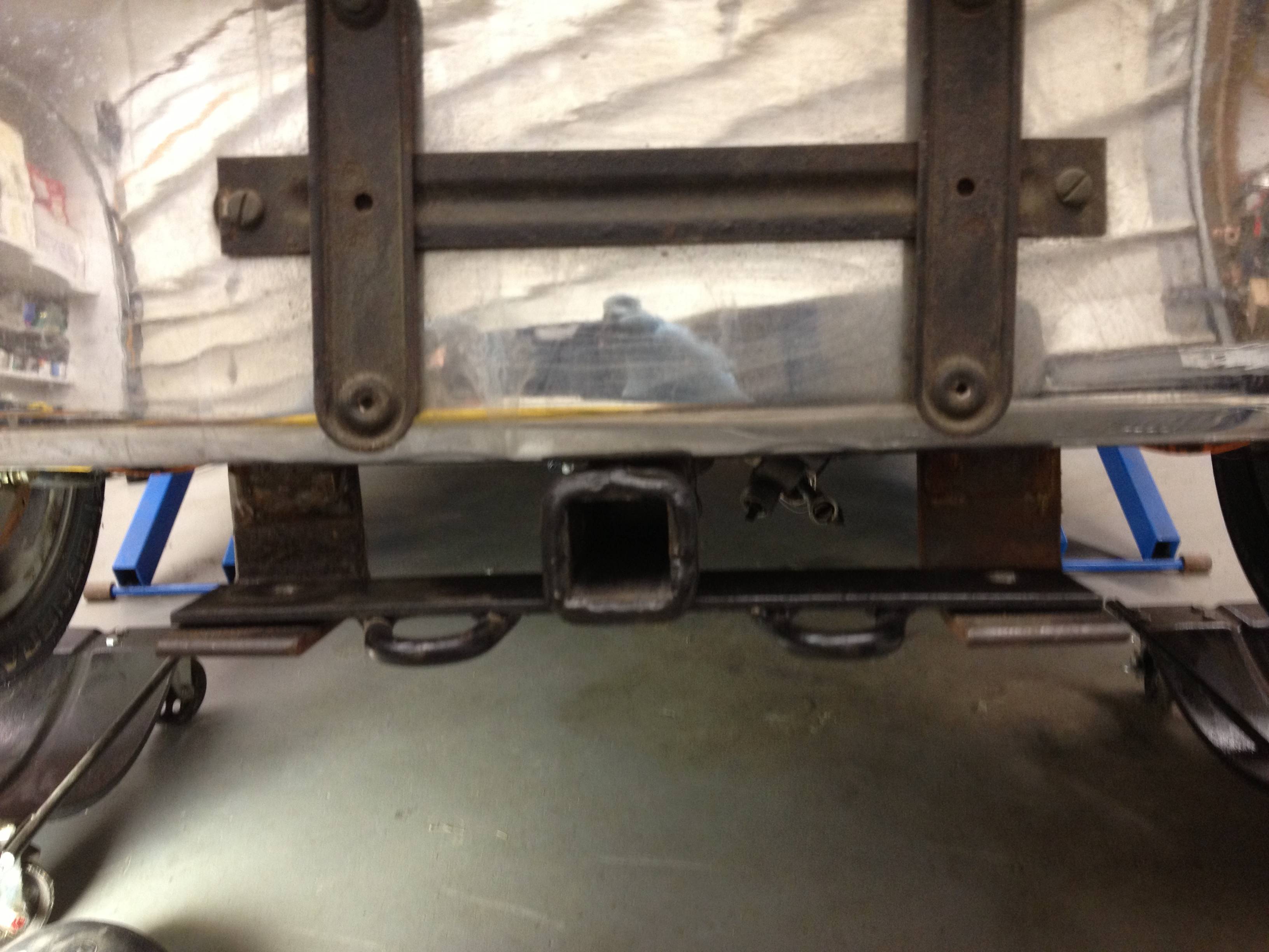 I wish I still had the H&H trailer hitch off my dads 914-6, it was way different than any of these designs, It went up to the front under the seats and had a support from the rear panel, like 3 or 4 holes..but always present..not a slip in..