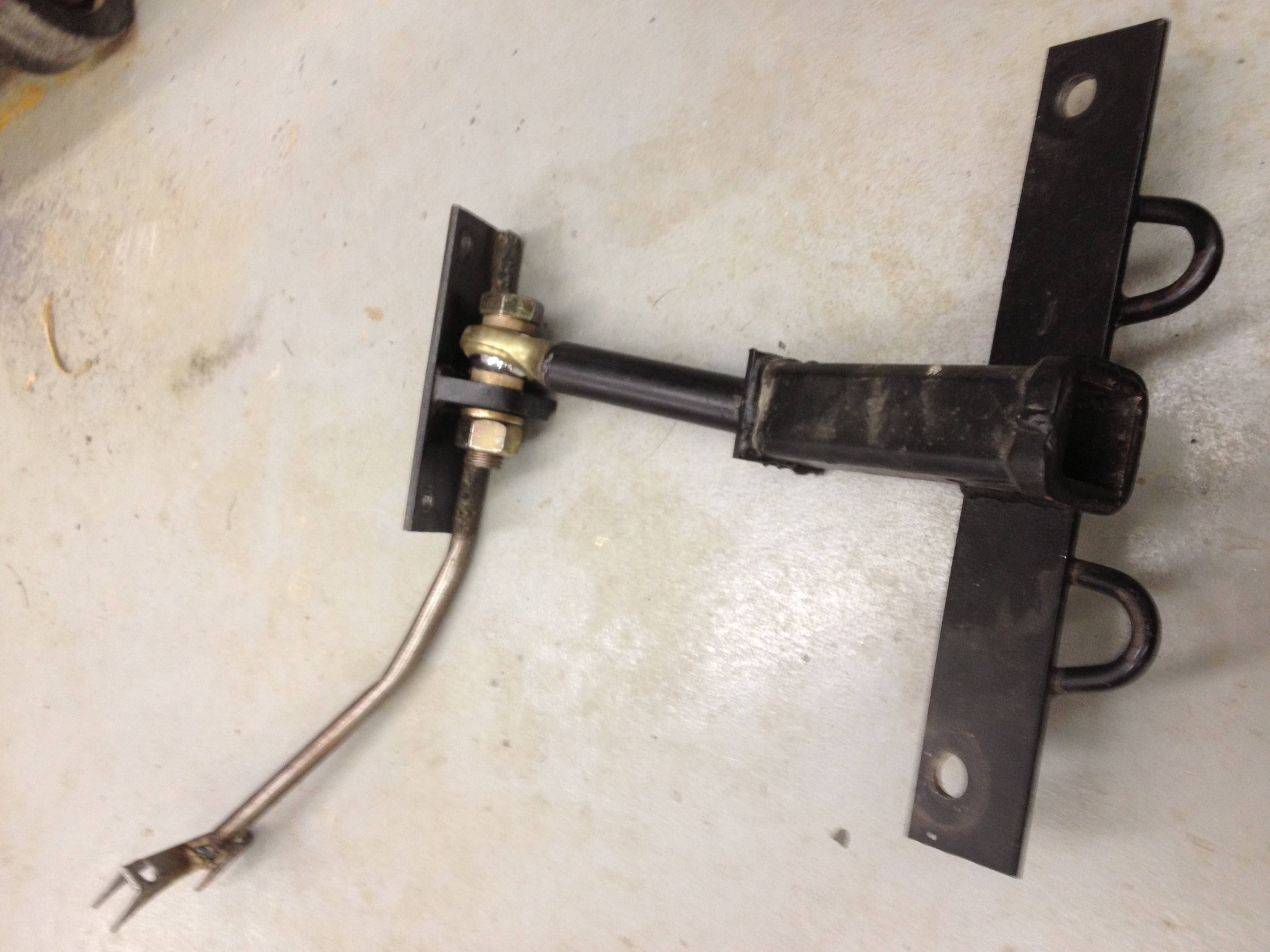 Mine was real simple - it was a piece of Angle Iron with a Flat Piece of Steel welded to it with a Hole in in it for the Hitch Ball. I bolted this through the Rear License Plate Wiring Holes with a backing plate on the other side.