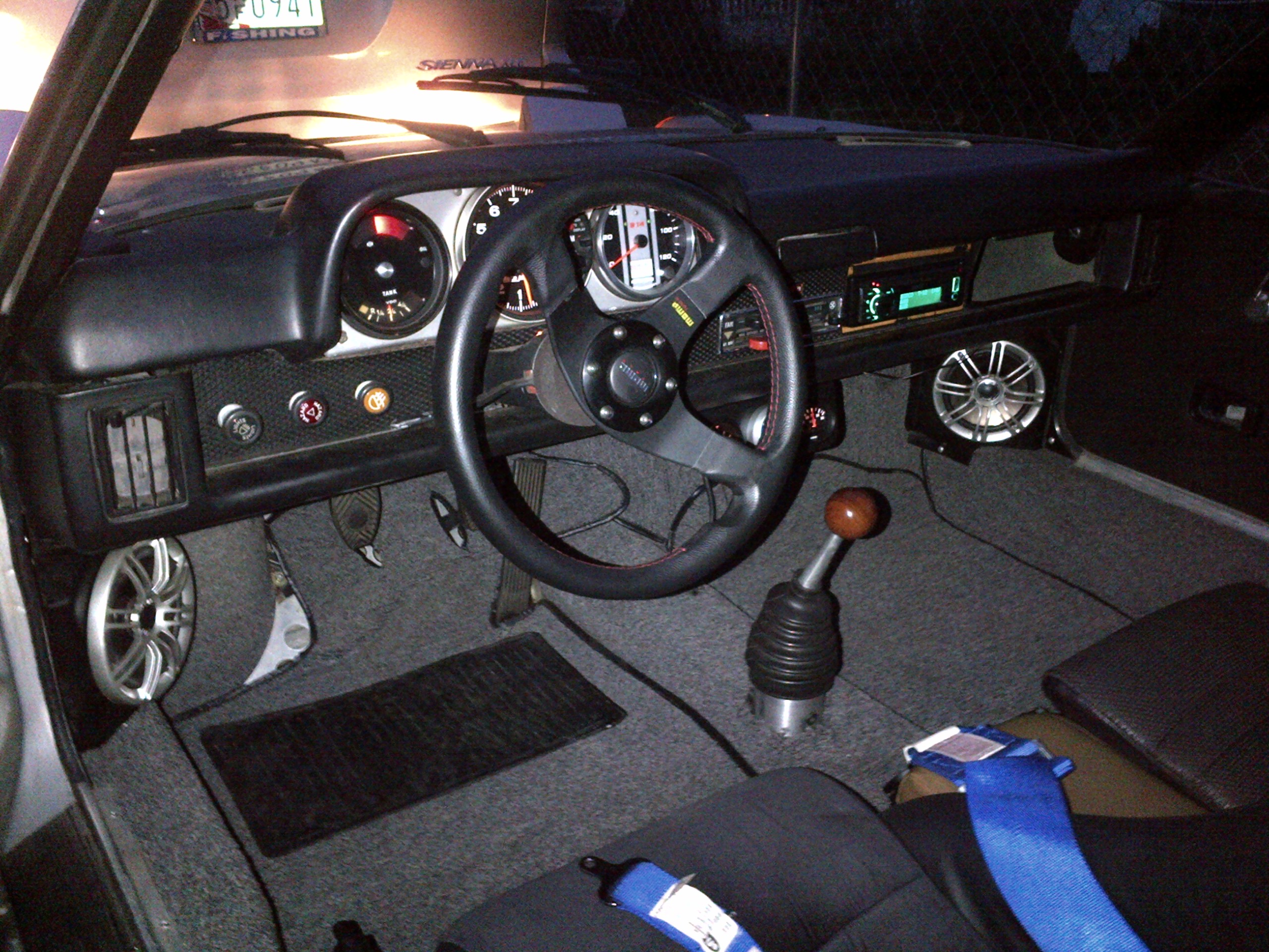 I have gotten some of the heater tins I need and have recieved some hoses from 914rubber and ordered the HE and modified parts from Tangerine. Attached are some pics of the car, the first night I got it the alternator belt kicked and had fun putting it back on. (IMG:style_emoticons/default/rolleyes.gif) Attached thumbnail(s) |