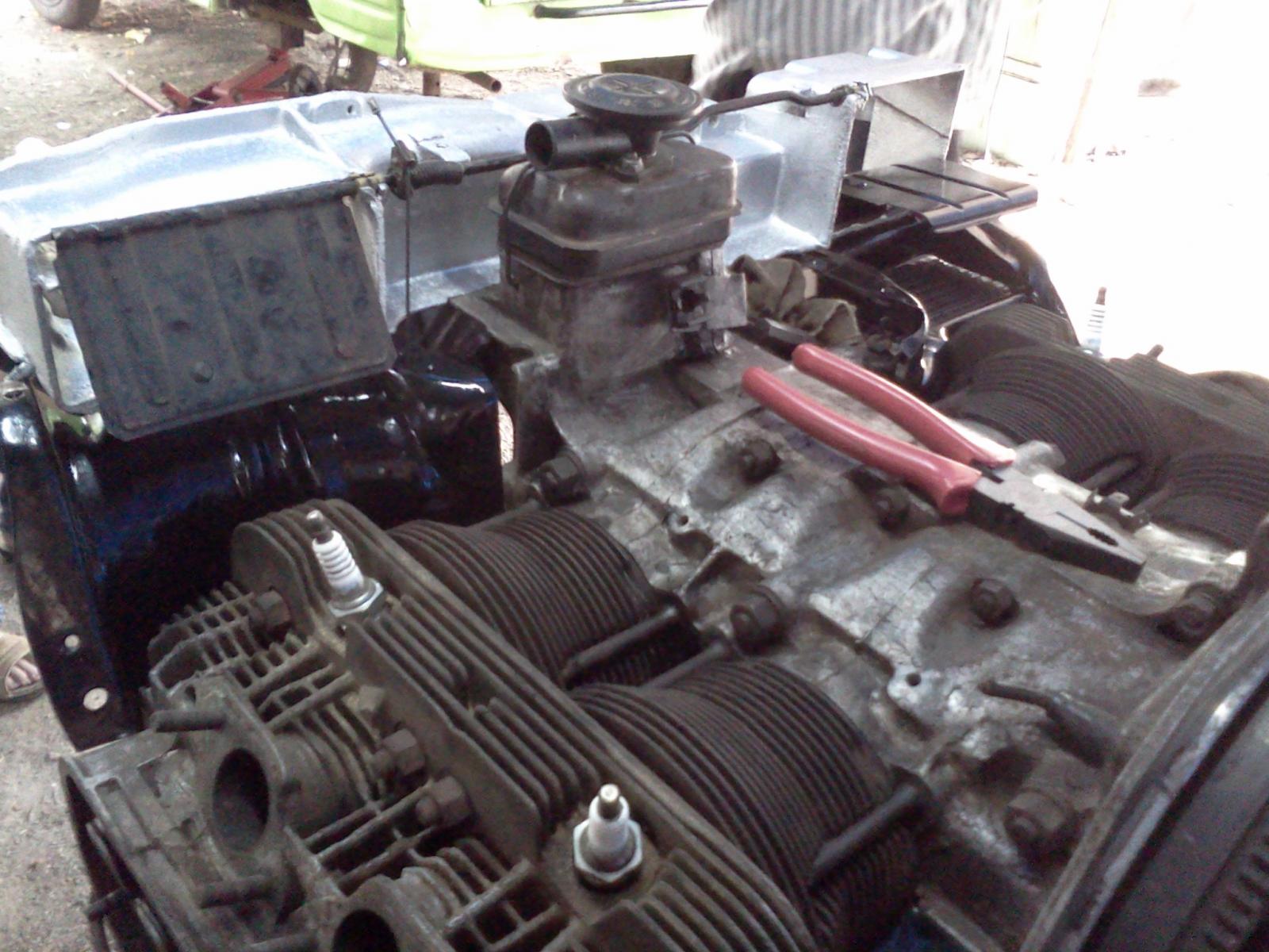 Looks like you have headers or at least not heat exchangers. Air guides (the tin pieces you got from Tangerine) may not fit unless you have HE's. Check the link to parts catalog in my signature for part diagrams