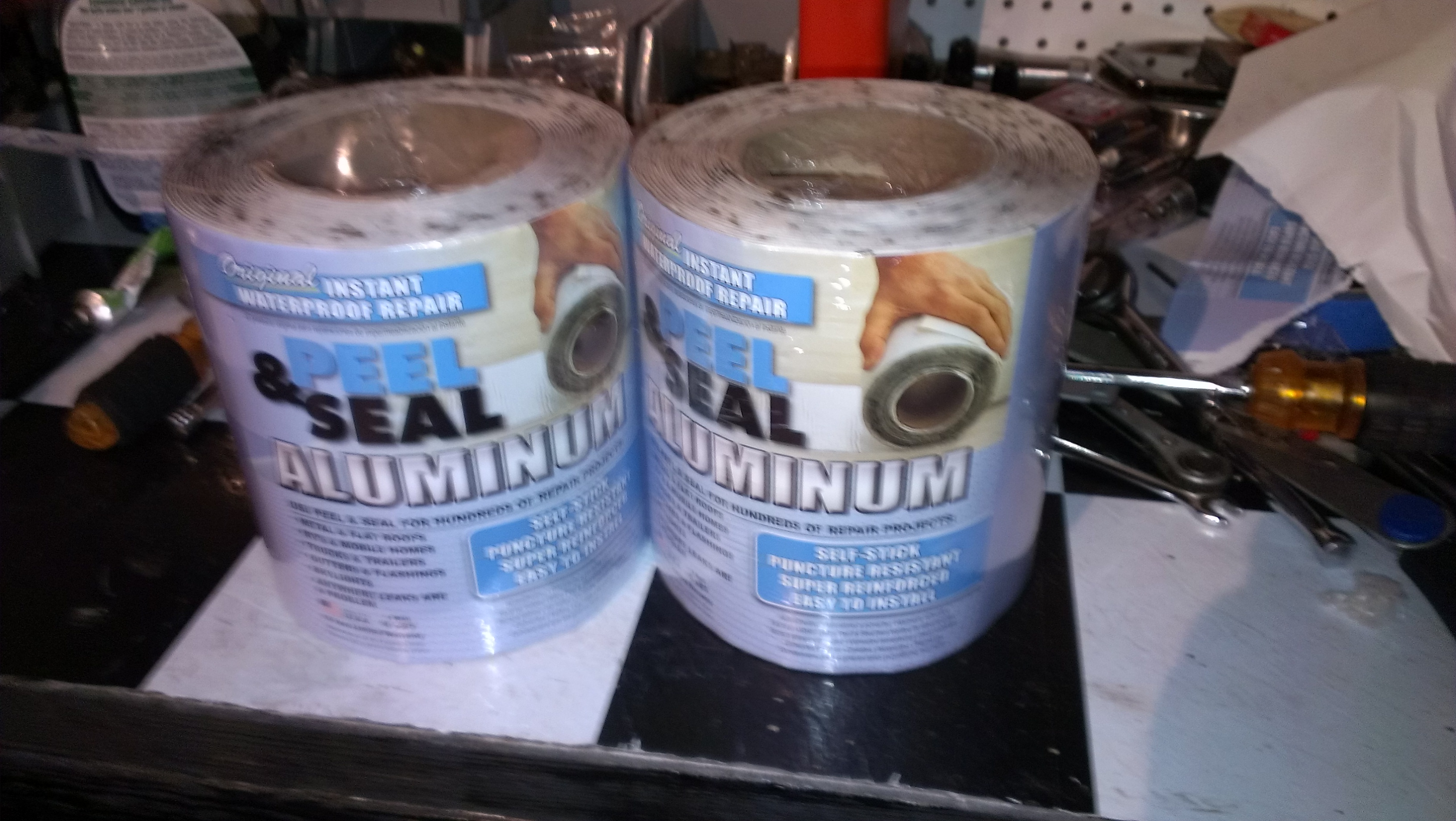 I have used the peel and seal roof patch material, same as the other more exspensive products. Same thing just no name brand stenciled all over the backing. Try it you will be glad you did, so will your wallet. Craig at CAMP I just bought Peel and Seal. 100' sq for $109. If it's good enough for Craig, it's good enough for me. It came in a 3'x 33' roll. Cuts easy and sticks down real sweet. A little love with a heat gun overcame our cold spring temps. I bought it at a prifessional roof supply place. Aluminum backed and ready to cut. I'll have plenty to do my doors and any stereo install needs too. |