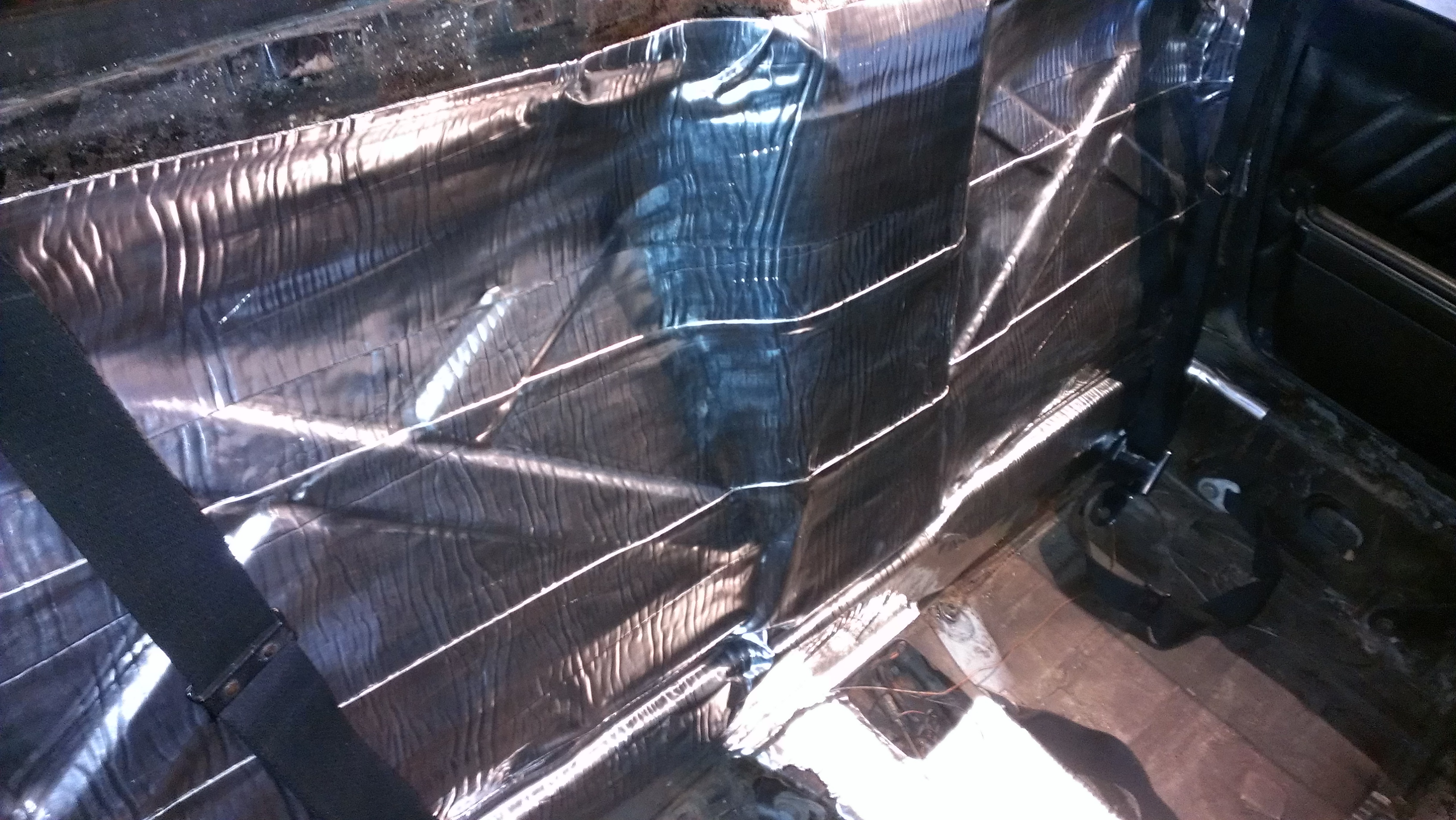 The problem with peel and stick, tar sheets, dynamat, fatmat, or anything that is sold that you adhere on top of the floor pan, is that if you have a leak and water gets under there, you are setting up the opportunity for more rust occurring.