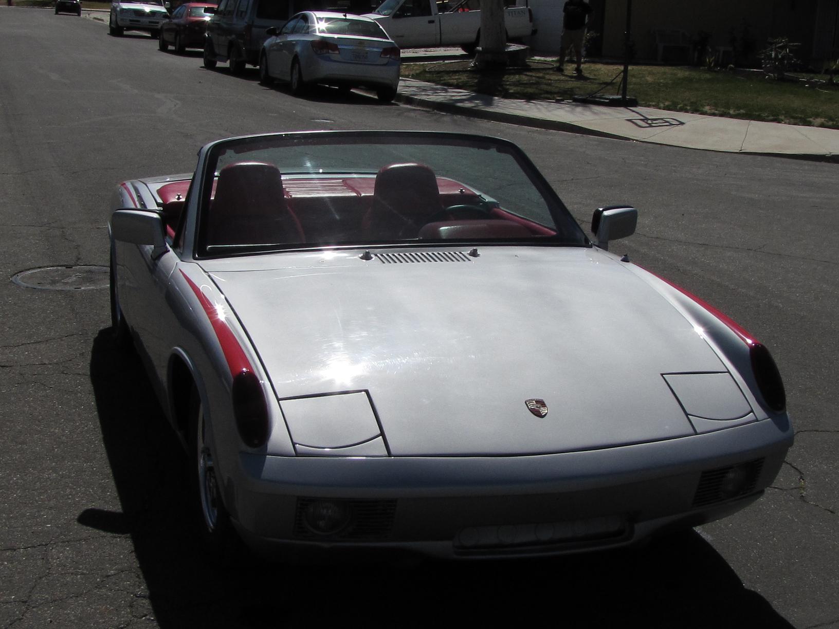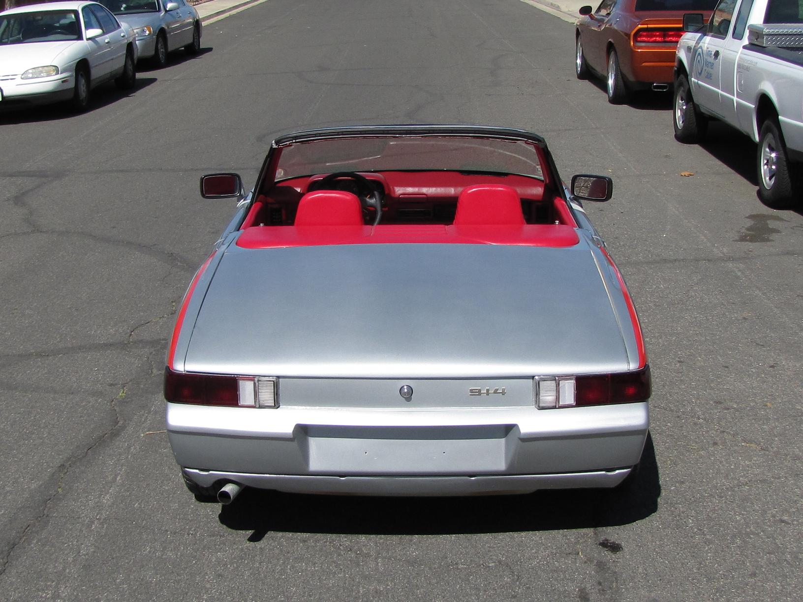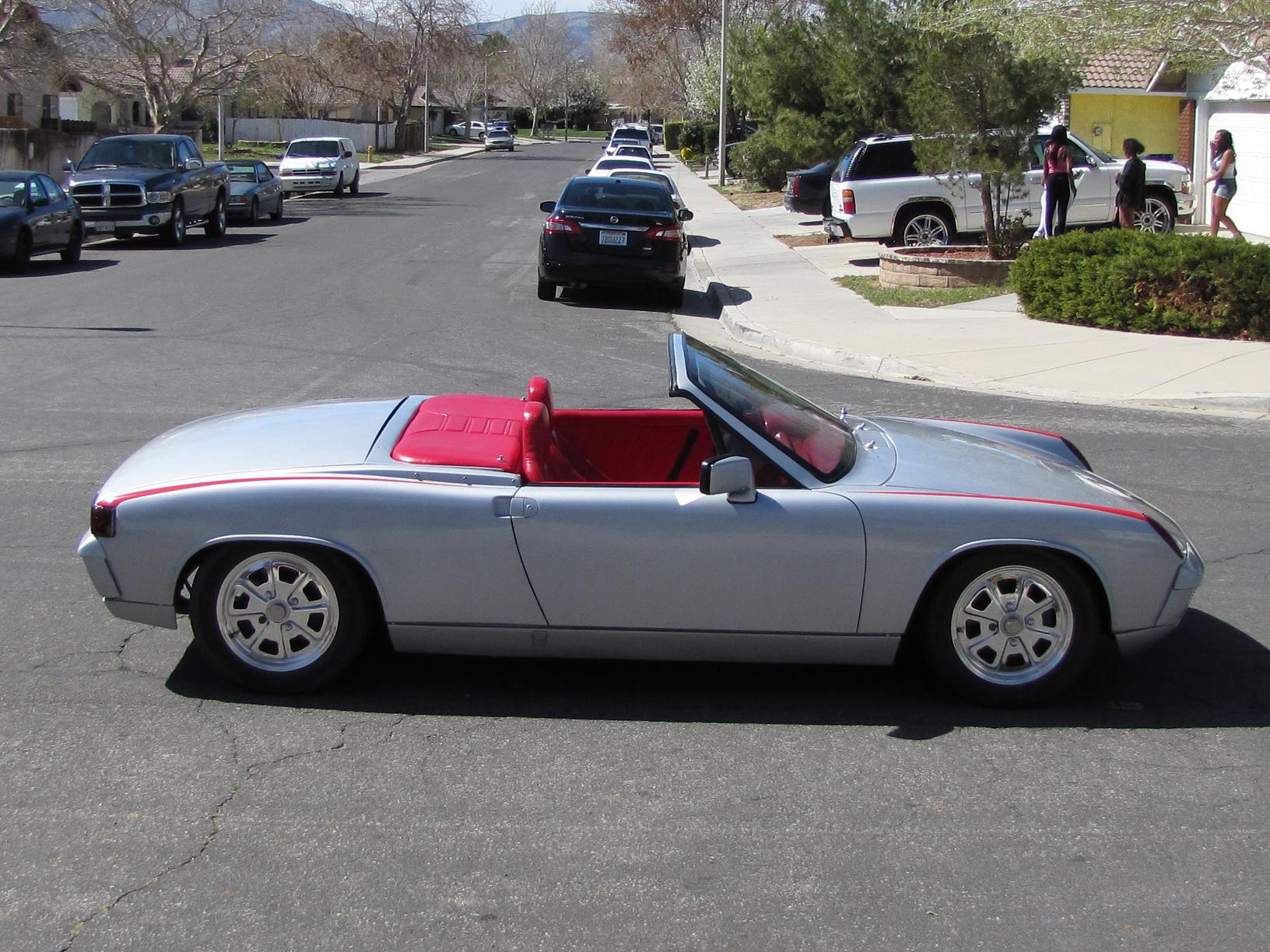 SOLD!!! 1974 custom convertible Porsche 914 2.0 Fuel Injection, 5 speed speed manual transmission. Beach Boys Racing in Venice, California customized the convertible and raked the windshield back a few degrees for that Speedster look. Car is Silver with custom red interior. Custom made fender decal stripes (can be removed), Polished original Fuch 4 wheels, Dunlop tires. KYB Adjustable shocks, Fuel injection is all new/rebuilt, engine odometer reads 55130 but NOT actual mileage. New Battery, new fuel pump (pressure set at 28 psi), Pertronix Electronic ignition, rebuilt computer (ECU), engine bay clean. Paint is in good condition, custom interior is all new Red, very RARE Momo steering wheel. I also have spare parts that were collected over the years, extra VDO gauges, fuel injection trigger points, and a RARE rear Euro fog light to name a few. I also have the convertible top and frame. Its comes with the purchase of vehicle. However condition of the canvas top is poor and would need to be replaced. I chose not to utilize the top because I enjoy the open top Speedster feel. Door handles need replacing. Engine mileage is unknown. Car was not running when I acquired it, but I got it running after replacing and rebuilding the fuel injection system.