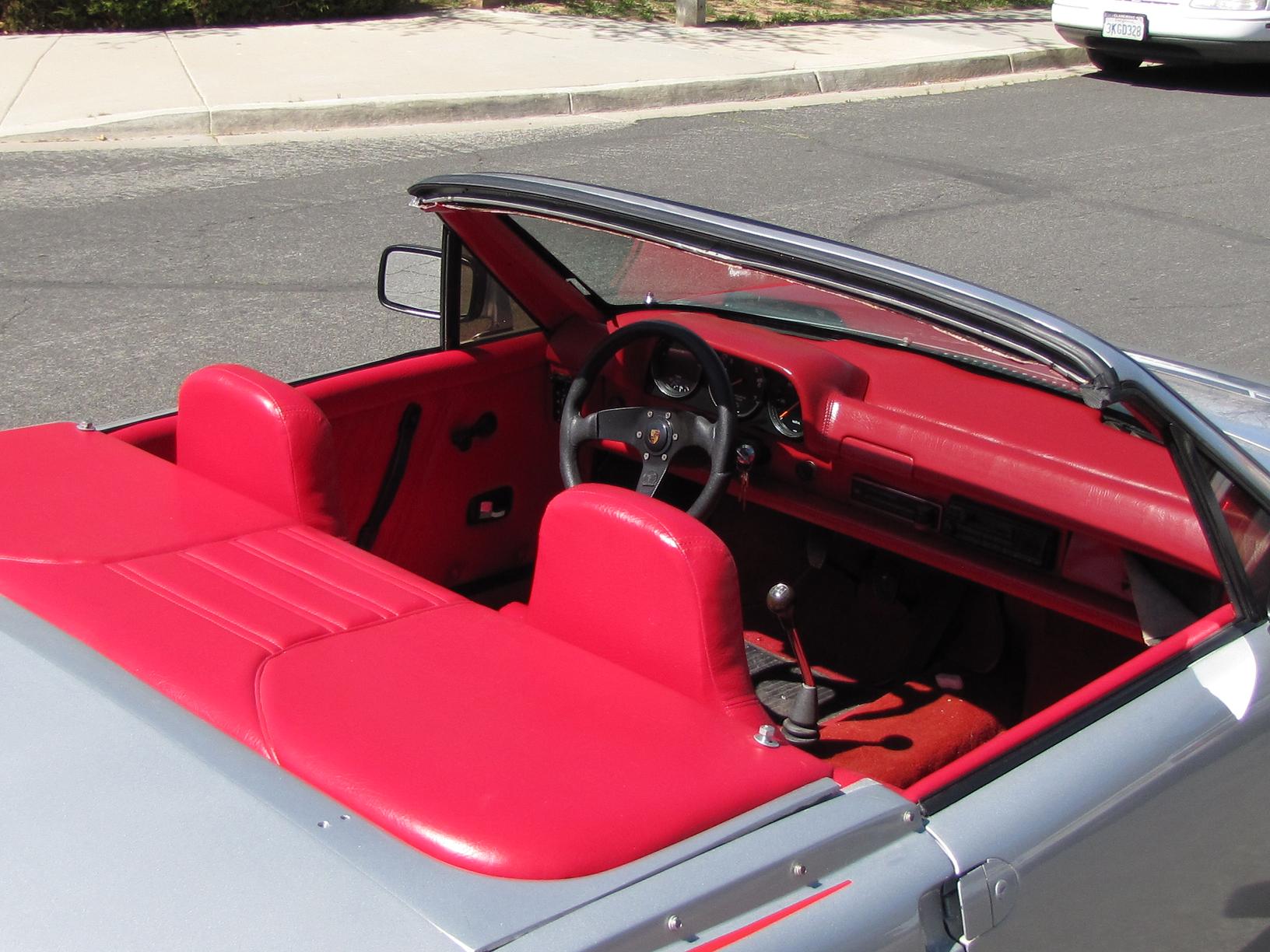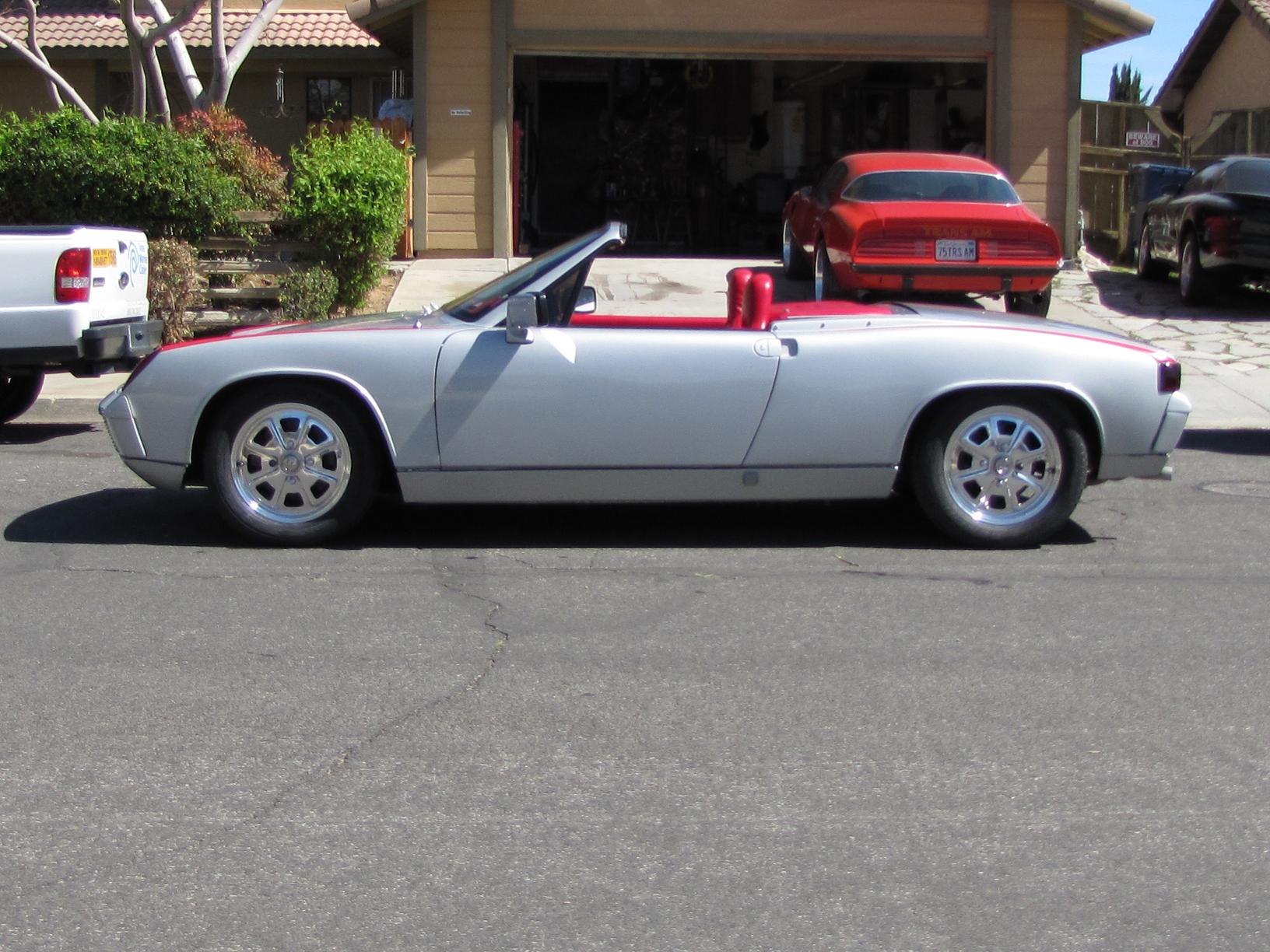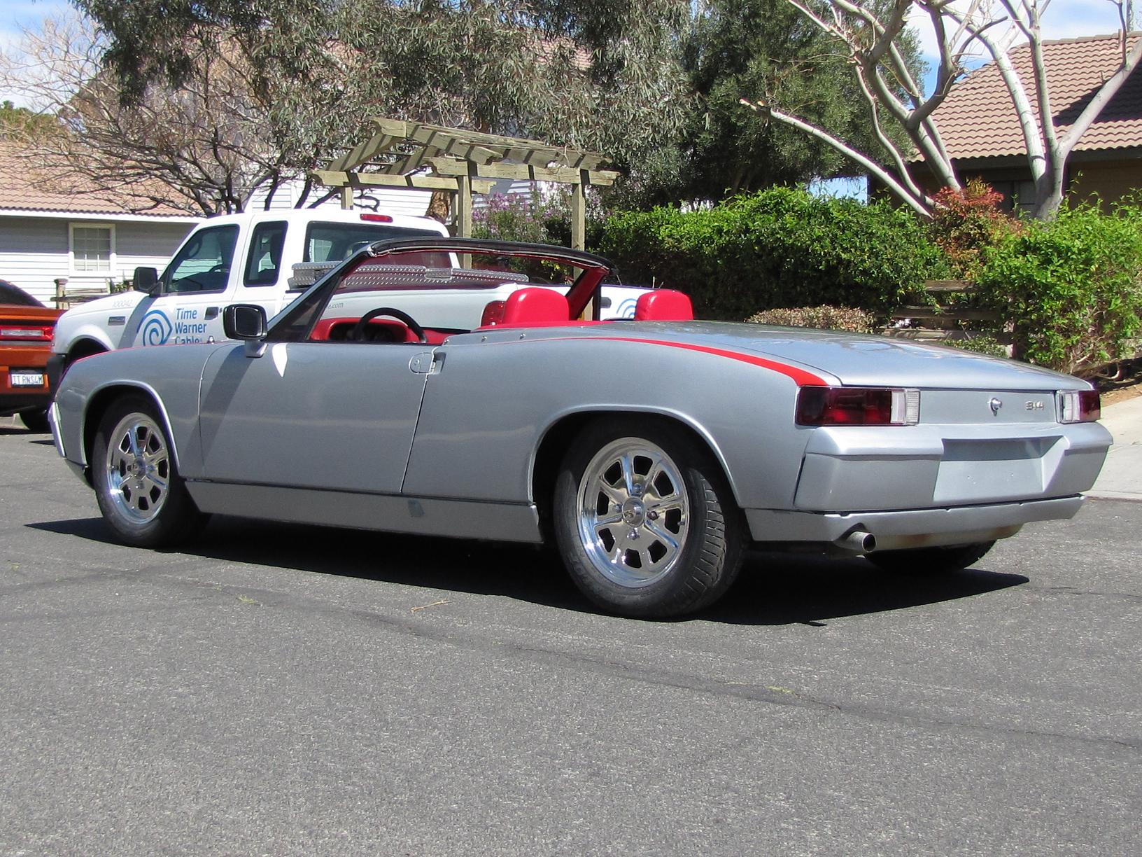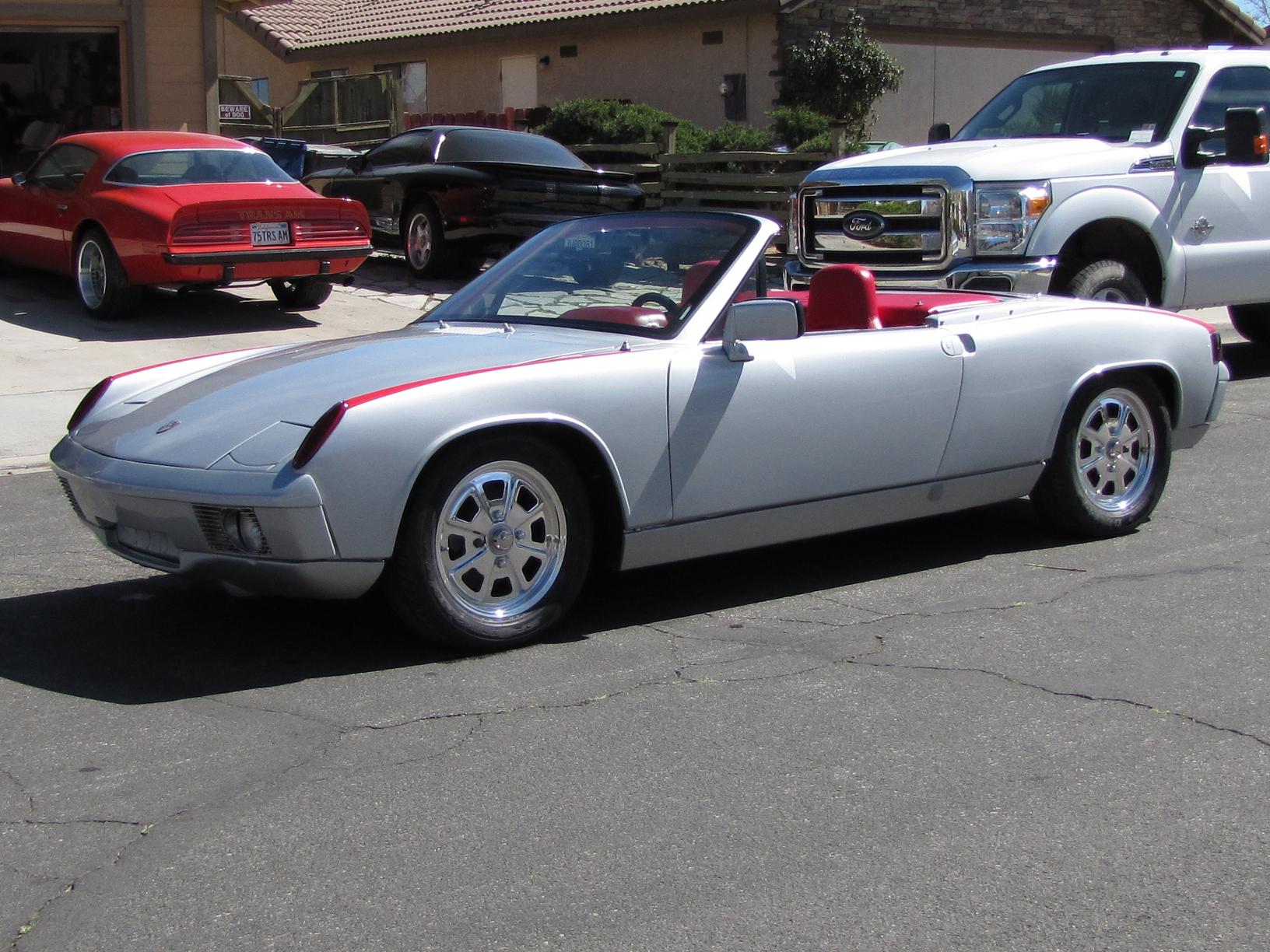 SOLD!!! 1974 custom convertible Porsche 914 2.0 Fuel Injection, 5 speed speed manual transmission. Beach Boys Racing in Venice, California customized the convertible and raked the windshield back a few degrees for that Speedster look. Car is Silver with custom red interior. Custom made fender decal stripes (can be removed), Polished original Fuch 4 wheels, Dunlop tires. KYB Adjustable shocks, Fuel injection is all new/rebuilt, engine odometer reads 55130 but NOT actual mileage. New Battery, new fuel pump (pressure set at 28 psi), Pertronix Electronic ignition, rebuilt computer (ECU), engine bay clean. Paint is in good condition, custom interior is all new Red, very RARE Momo steering wheel. I also have spare parts that were collected over the years, extra VDO gauges, fuel injection trigger points, and a RARE rear Euro fog light to name a few. I also have the convertible top and frame. Its comes with the purchase of vehicle. However condition of the canvas top is poor and would need to be replaced. I chose not to utilize the top because I enjoy the open top Speedster feel. Door handles need replacing. Engine mileage is unknown. Car was not running when I acquired it, but I got it running after replacing and rebuilding the fuel injection system.