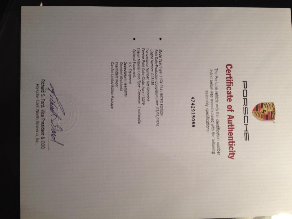 I have decided to sell my 1974 Porsche 914 Limited Edition “Creamsicle”. Only 1000 Limited Edition 914s were built and 500 of them were Creamsicles, a color scheme of Light Ivory and Pheonix Red. This car is one of only 86 Creamsicles known to still exist. I have a Certificate of Authenticity for this car from Porsche, confirming that this is a genuine Limited Edition car.